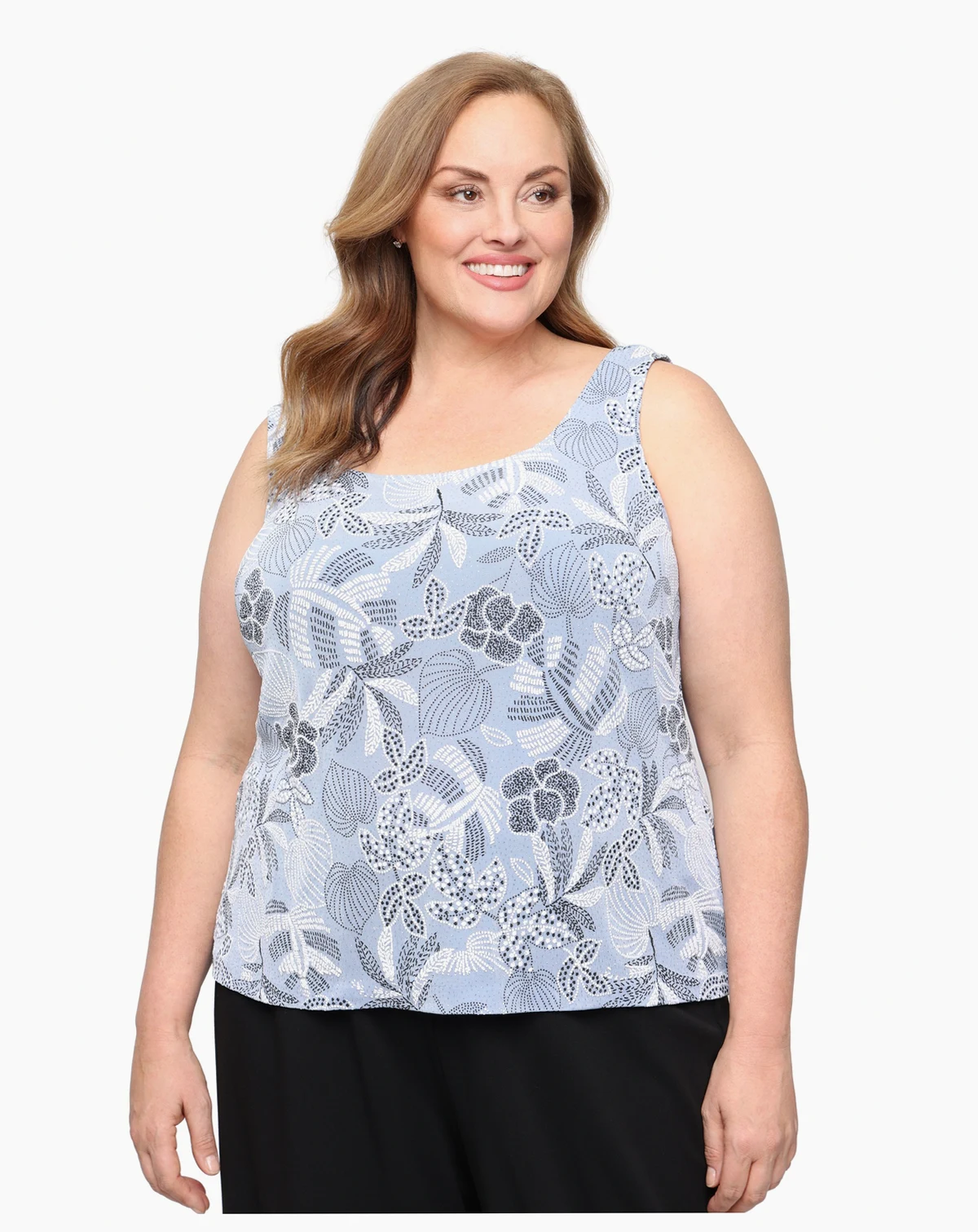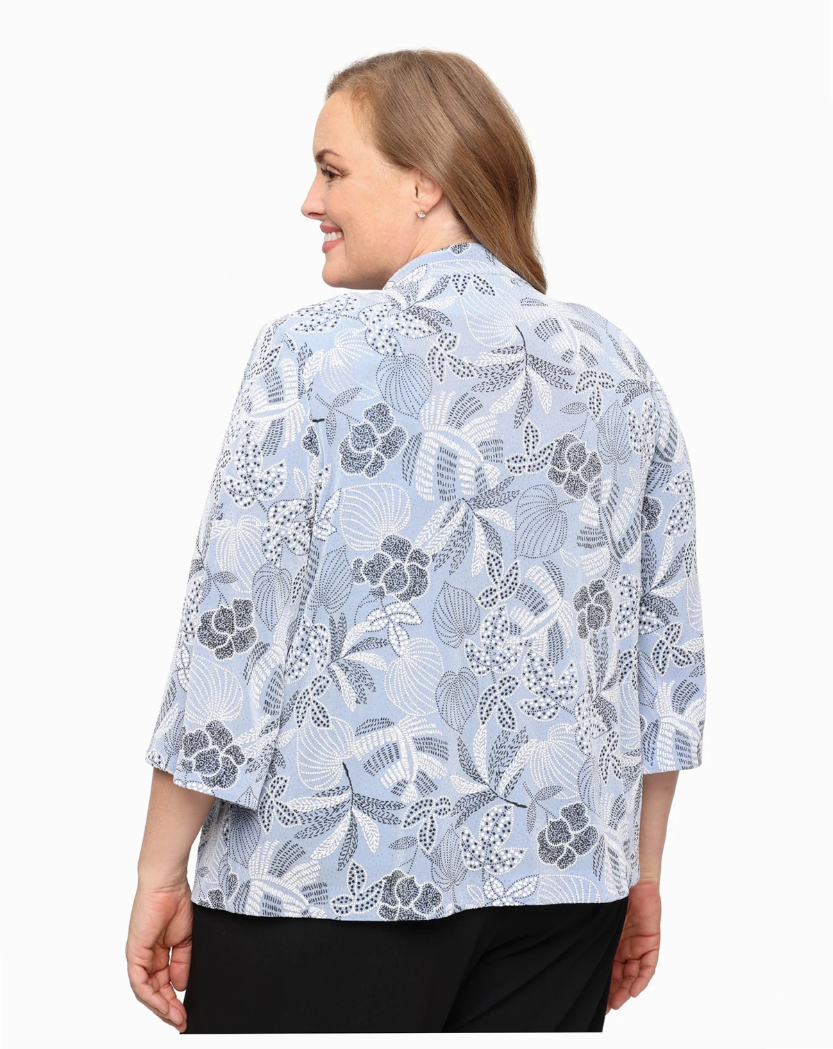 Delicate patterns and fluid layers create a polished, occasion-ready look in this two-piece set from Alex Evenings. Featuring a mandarin neckline and 3/4-length sleeves, the A-line top pairs seamlessly with the coordinating jacket for an elevated finish.