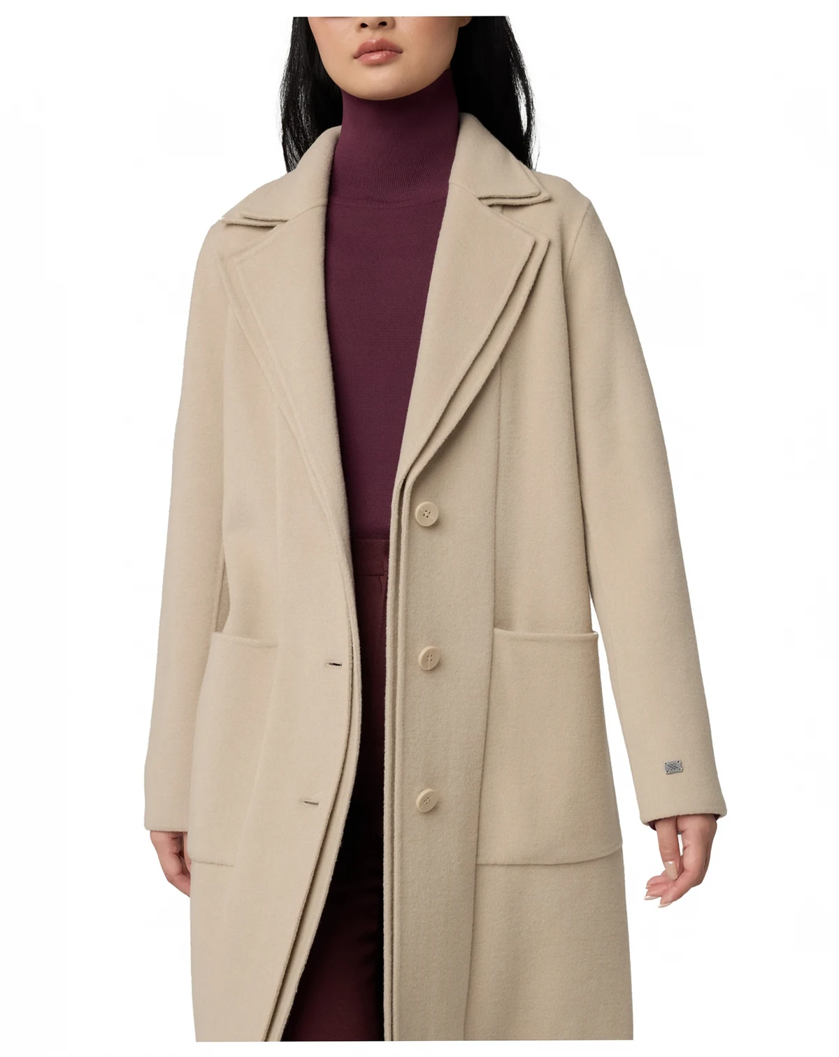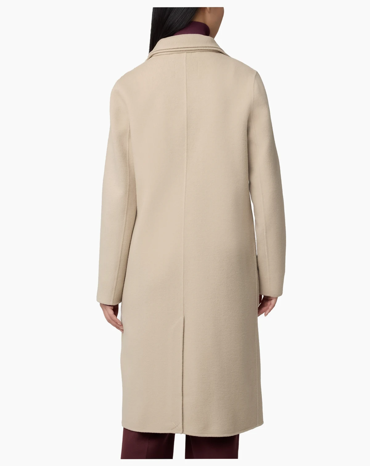 The BENICIA by SOIA and KYO has you covered in sumptuous double face wool right down to your knees. Fashioned with a modern double collar and lapel bib, it s a unique piece that steps gracefully from the crowd.
