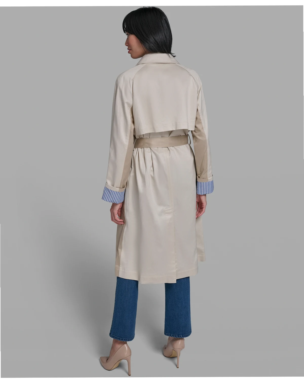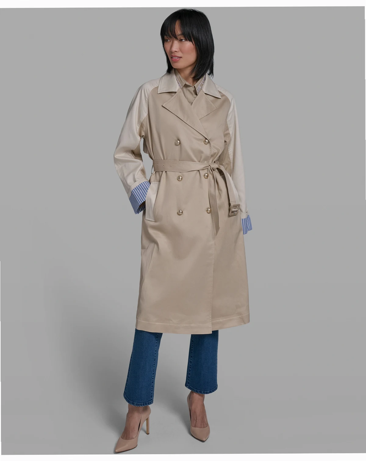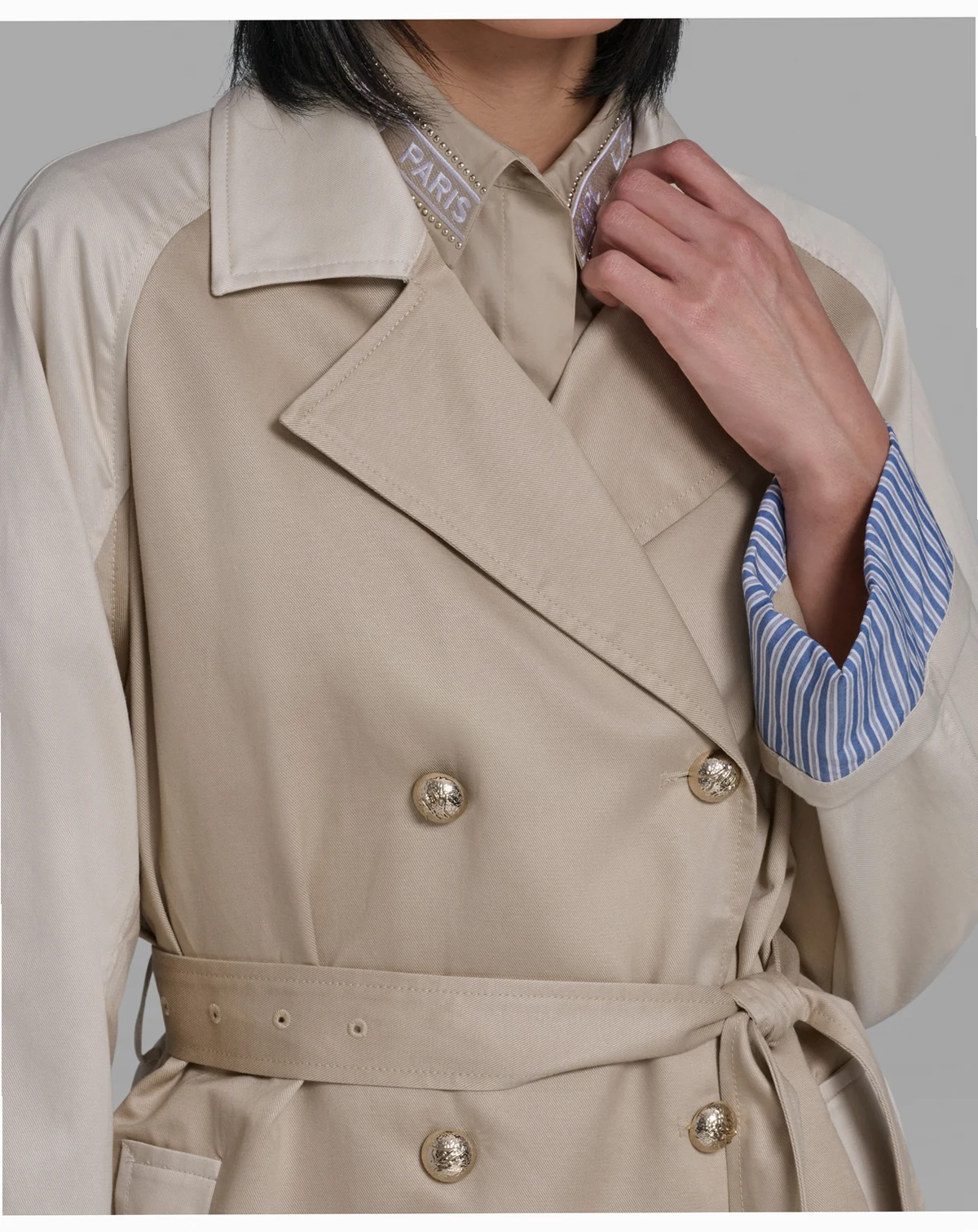 Women's Color Block Collared Trench Coat