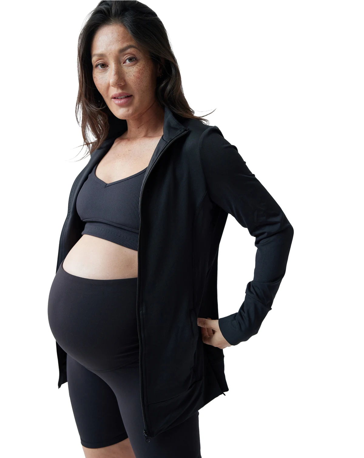 This active maternity jacket will take you from week 4 to week 40 (and beyond!). Thanks to strategically placed side zip panels that open up to give your bump some breathing room. Equipped with new active ribbed fabric that s textured on the outside but soft and smooth on the inside.