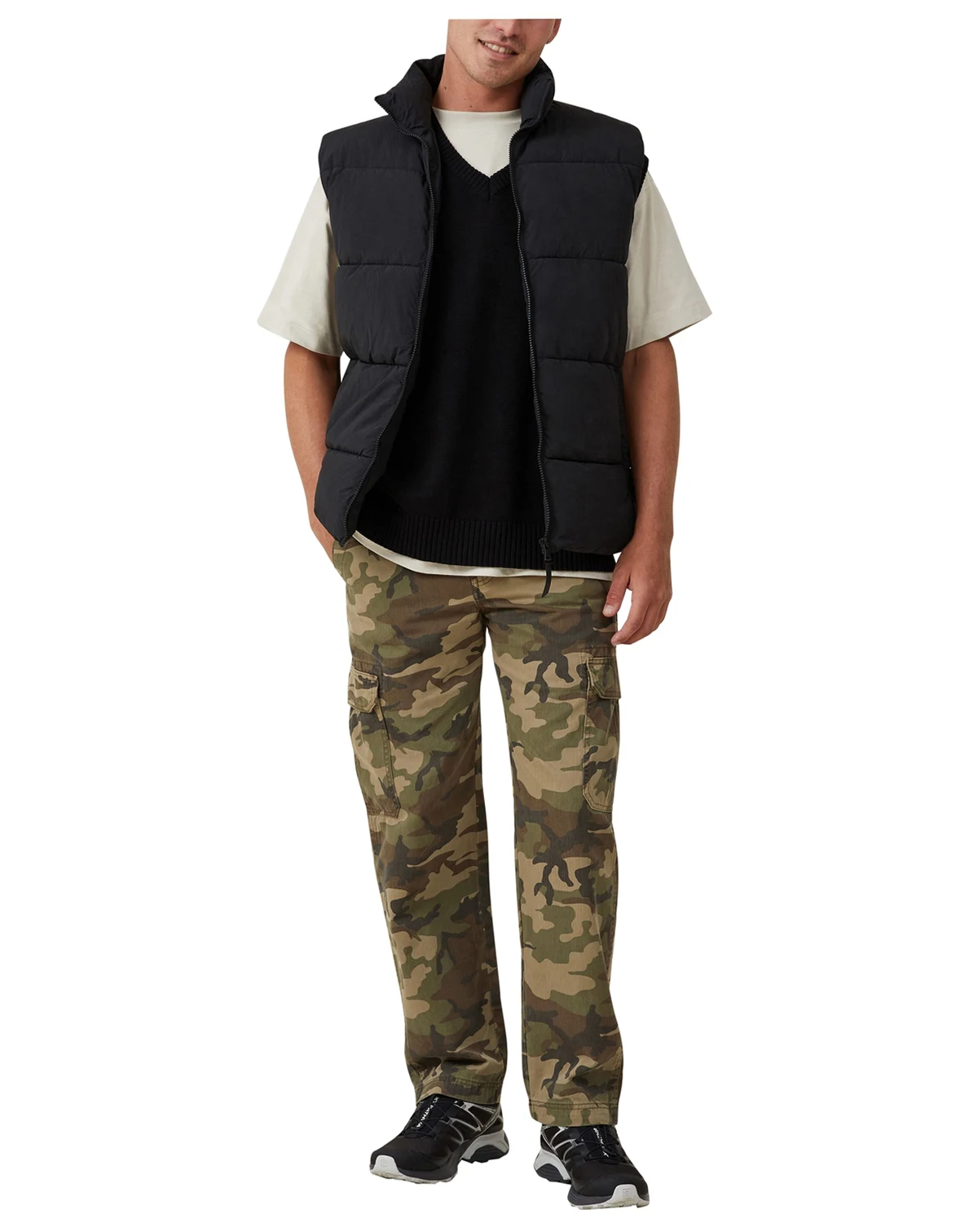Classic fit puffer vest; Comfortable, relaxed fit; Approximate model height is 6'1" and he is wearing a size M