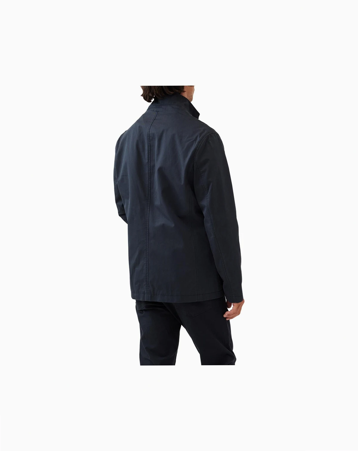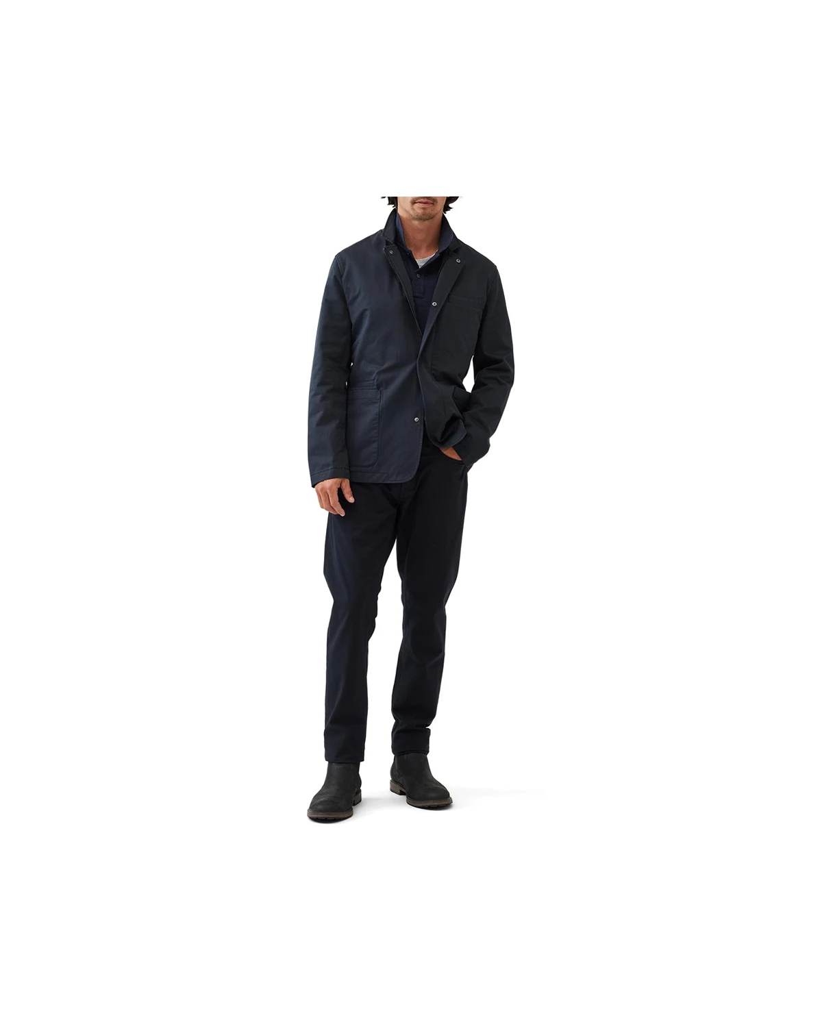 This modern traveler-blazer takes cues from our iconic Winscombe jacket, but made to suit the whims of transeasonal weather by removing the interior padding and lining. The fabric features a water-repellent Italian cotton exterior. A concealed snap and zip closure offer a secure fit, while subtle details like curved welt pockets and a jet pocket add a touch of sophistication.