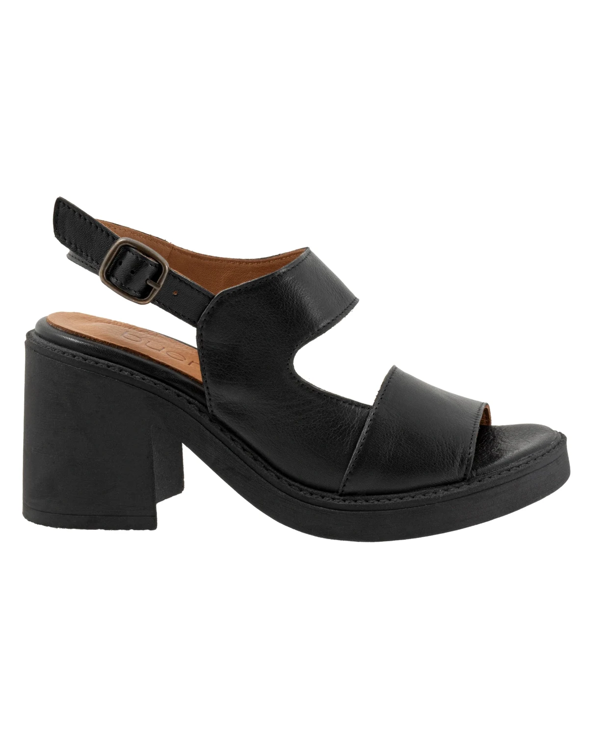 Leather wraps your foot back to an adjustable sling while leaving the instep exposed on the Myla sandal. The thick heel is combined with a 3/4" platform sole.
