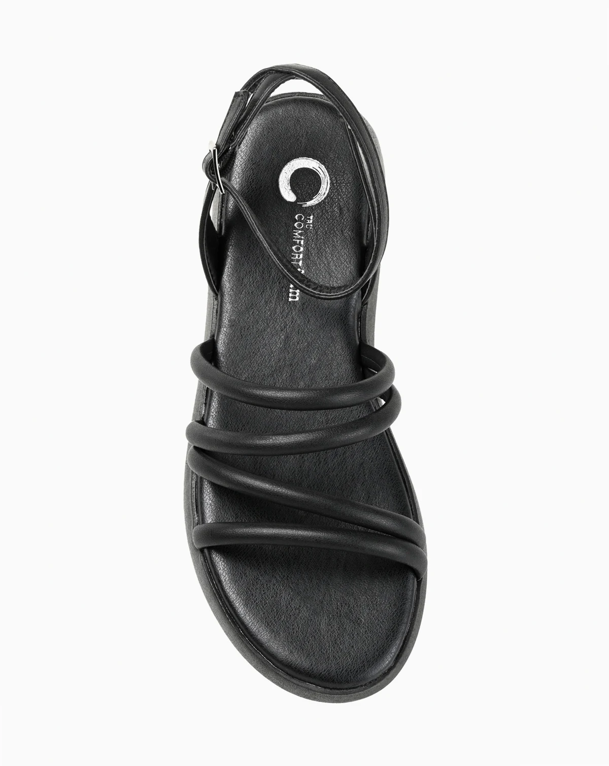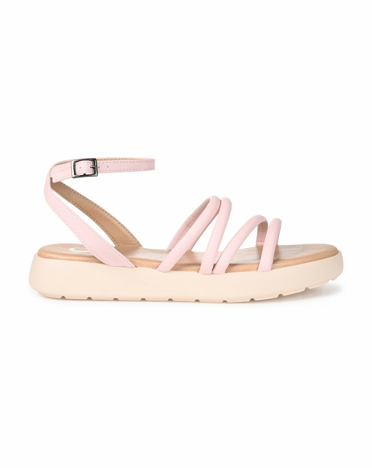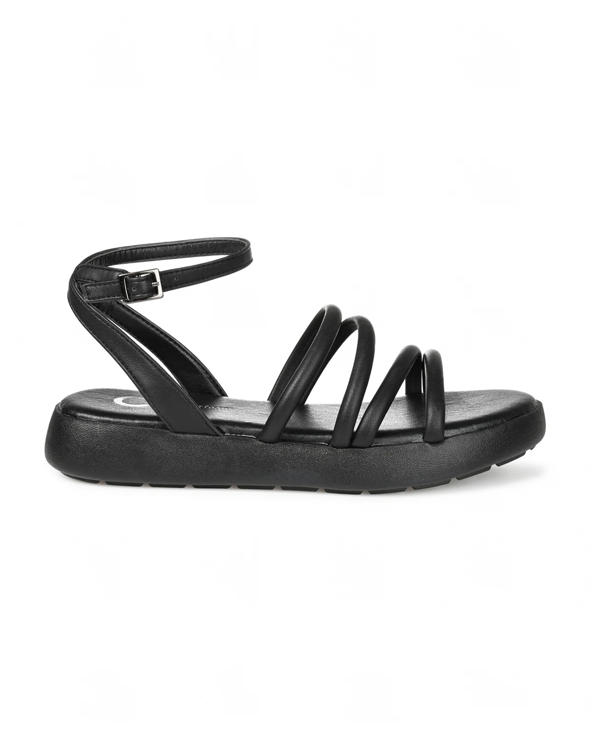 Perfect for those fun days in the sun, the Palomma sandal by Journee Collection. This modern style features a wraparound buckle strap and puffed vegan leather straps at the toe. A thick white sole adds retro charm to the design.