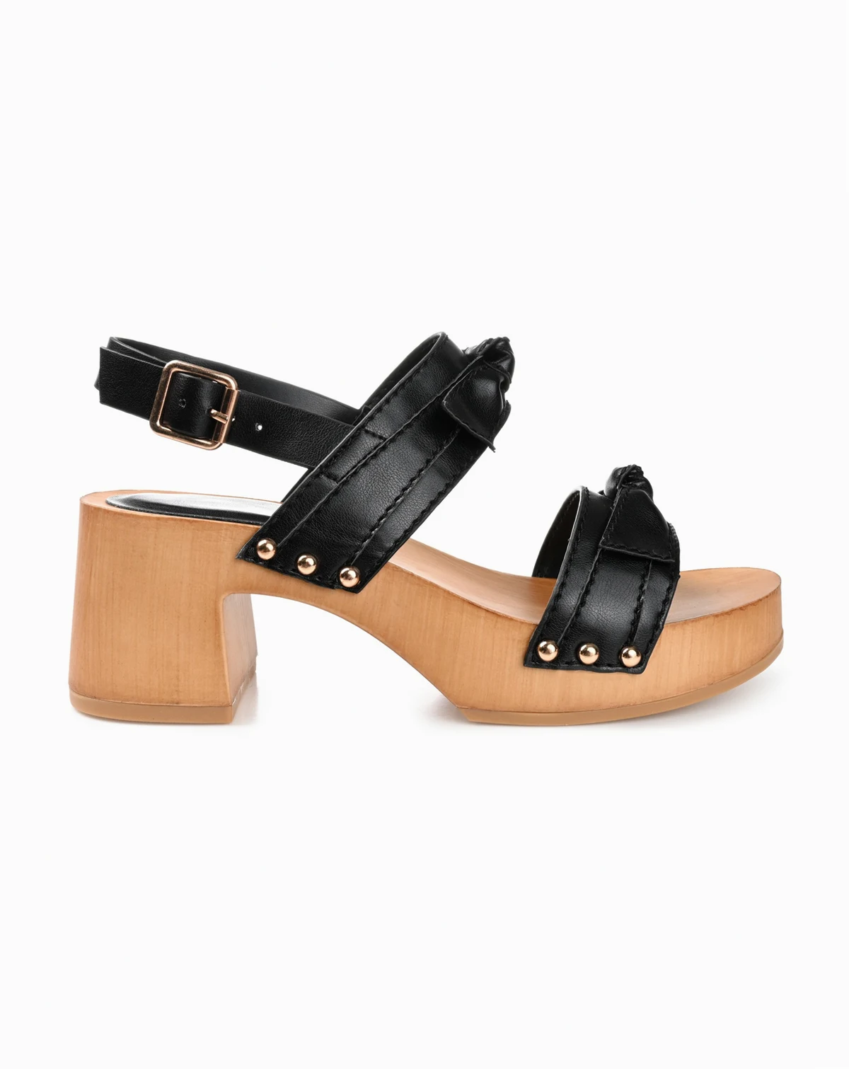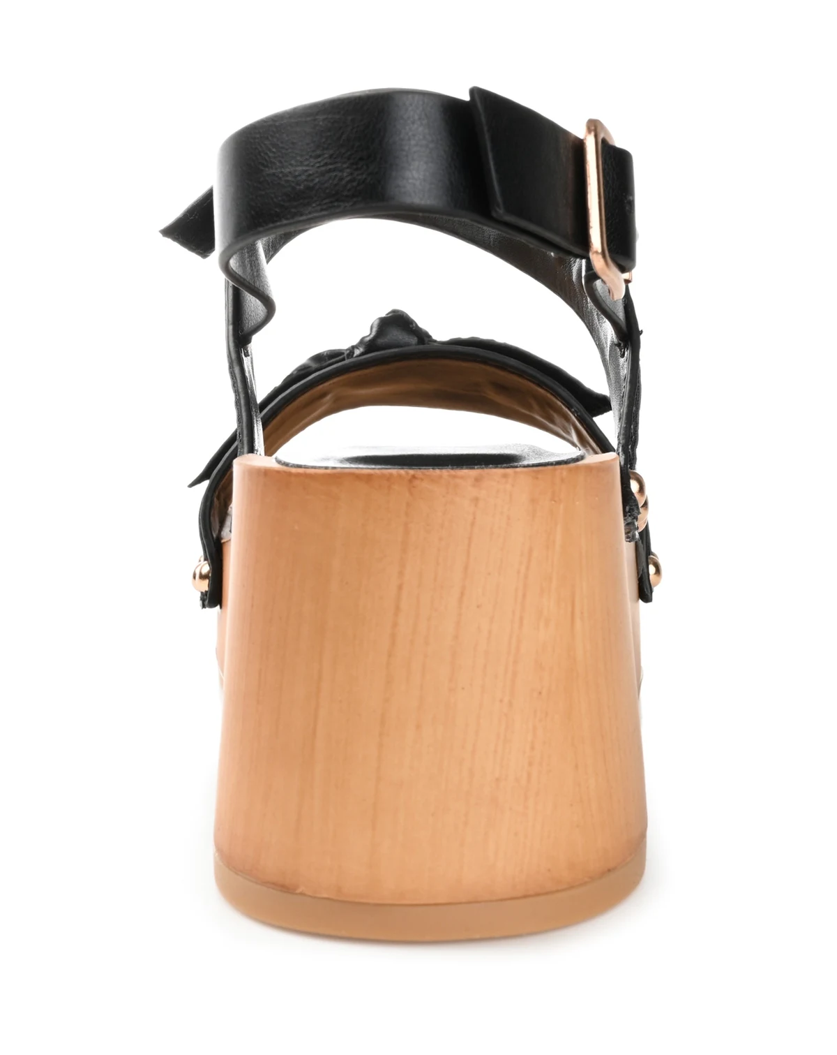 The Tia by Journee Collection is understated but sophisticated. The uppers of this strappy heel are made for a comfortable fit. The look is enhanced with a faux wood block heel and a lovely buckle strap.