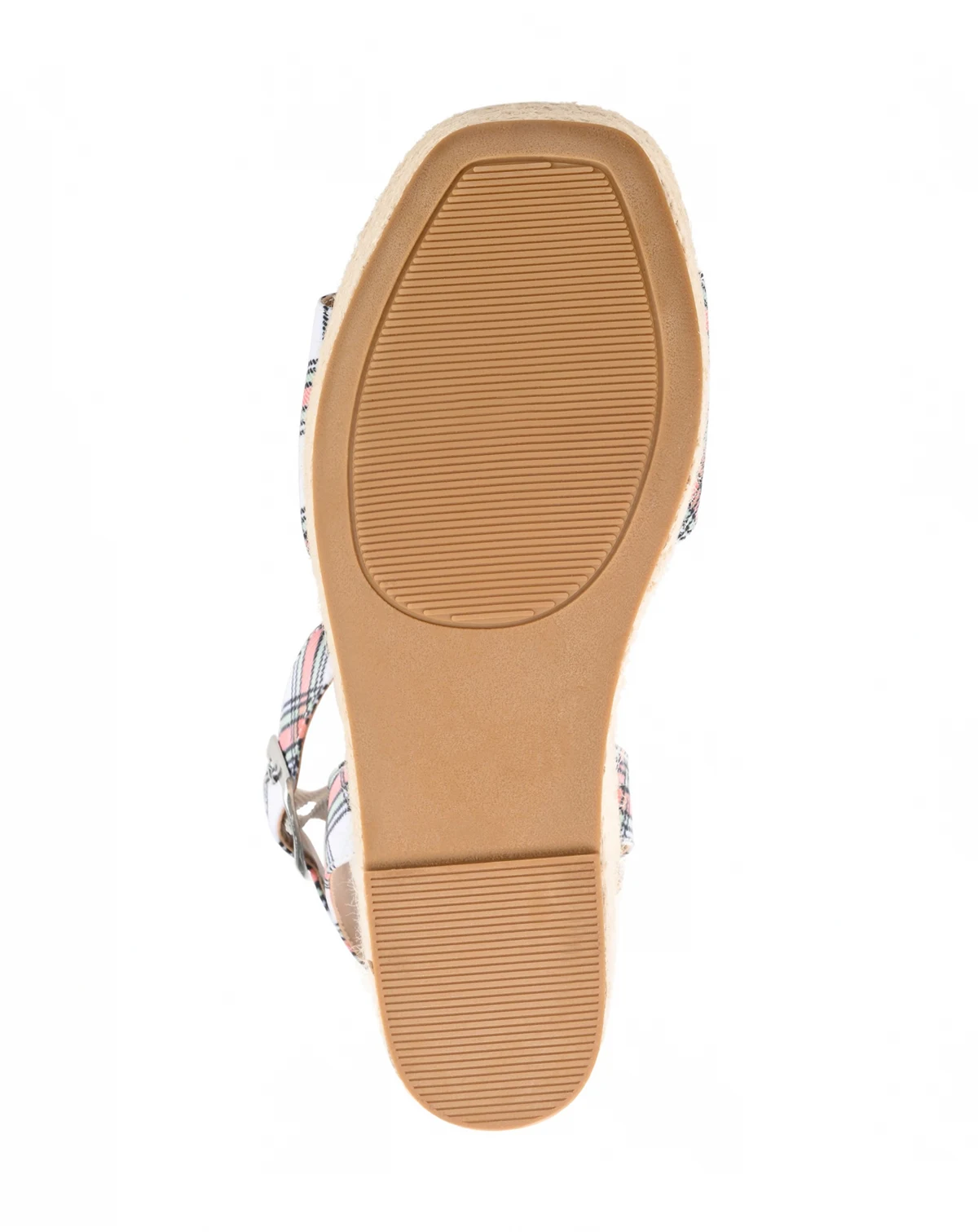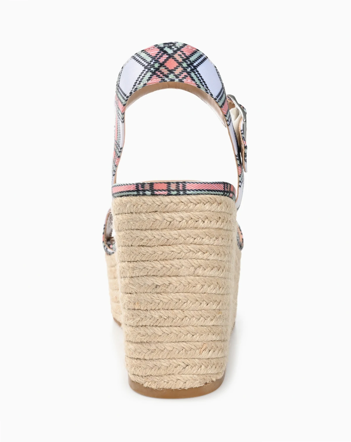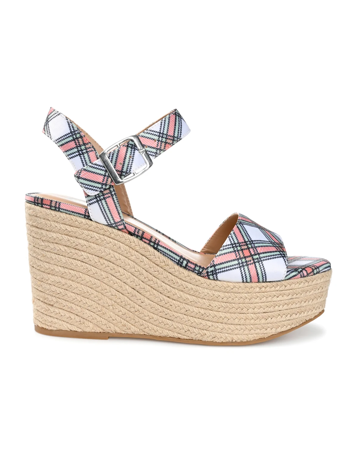You won't be able to stop yourself from wearing these wedge-heeled sandals with everything because the manmade materials make them oh-so-comfy! Slip on your bell-bottoms and queue the disco music because the 70s are back with the Pearrl by Journee Collection. The braided espadrille details and vibrant print make this throw-back style a real statement.