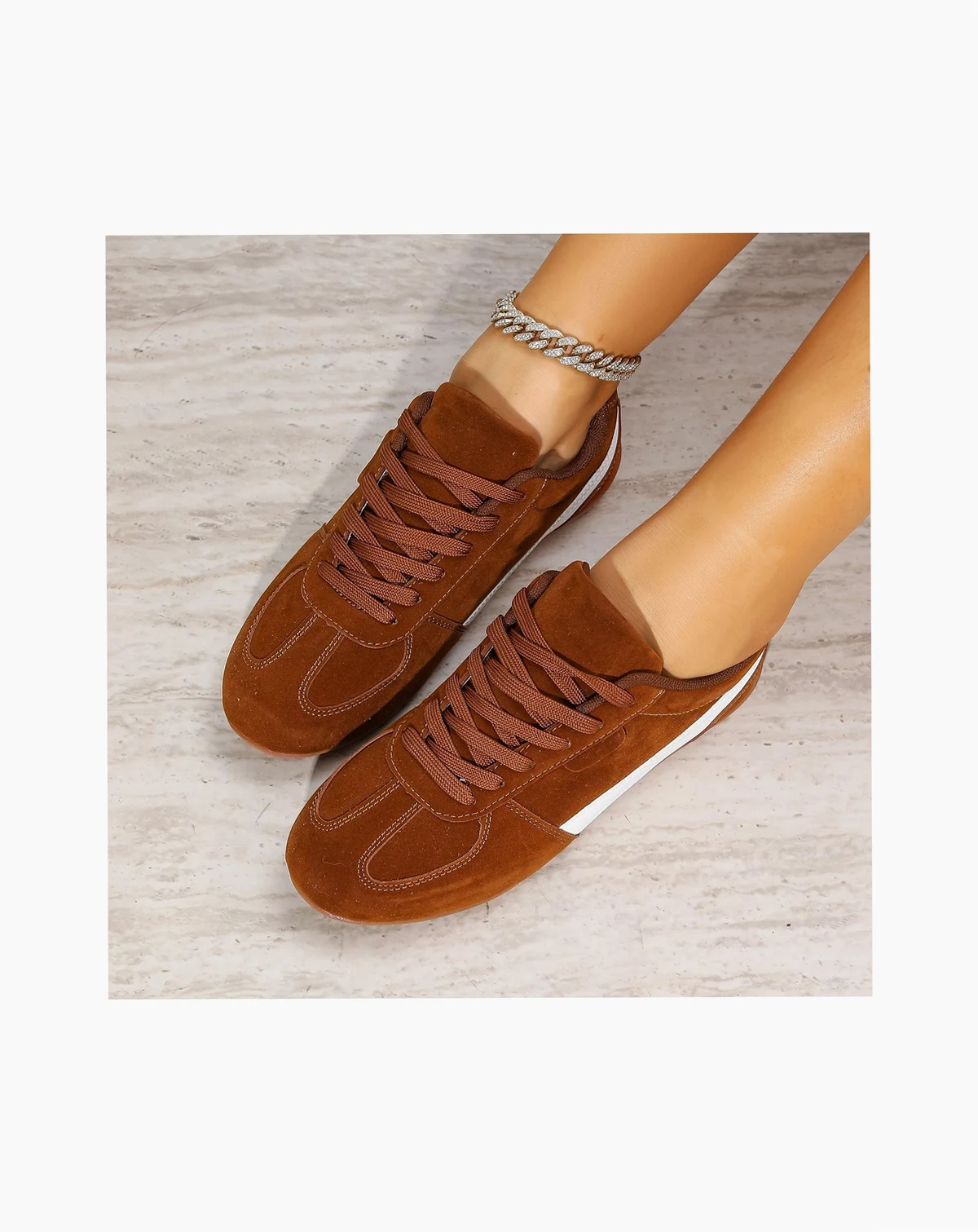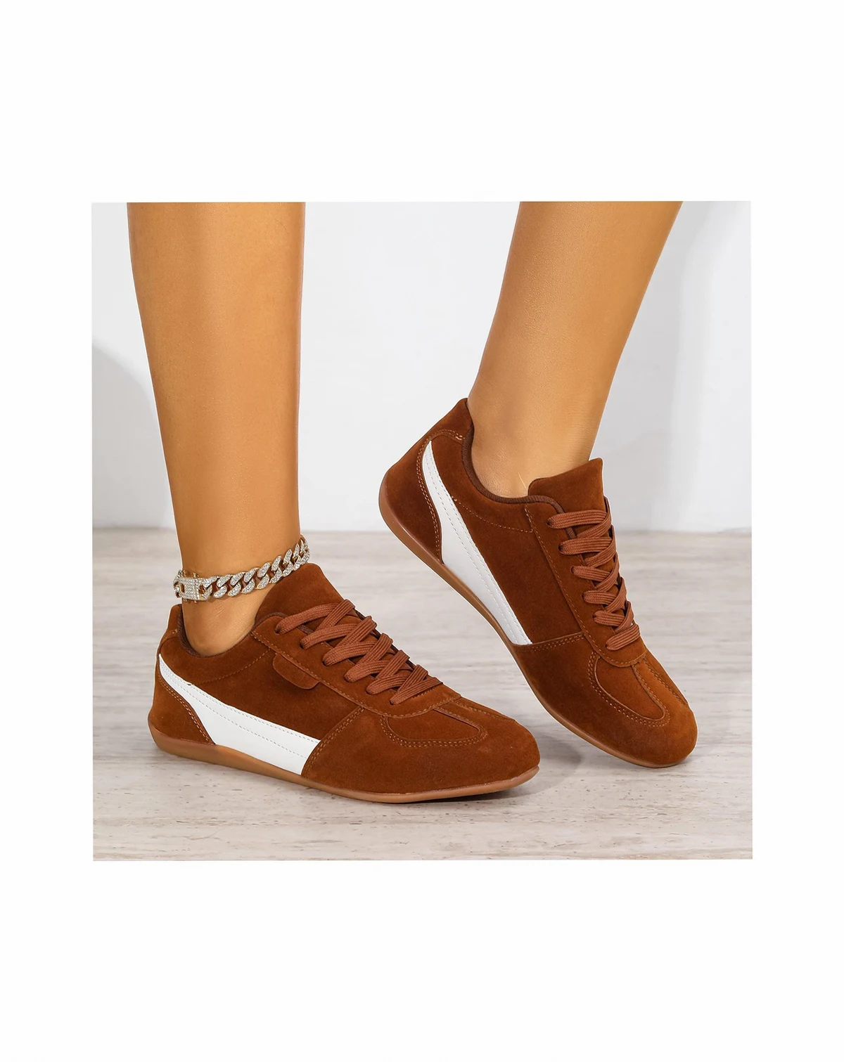 Step into retro style with Luno sneakers. Designed with an on-trend minimalist sole and finished with a striking contrast side panel, these low-top lace-up sneakers blend vintage athletic vibes with modern versatility.