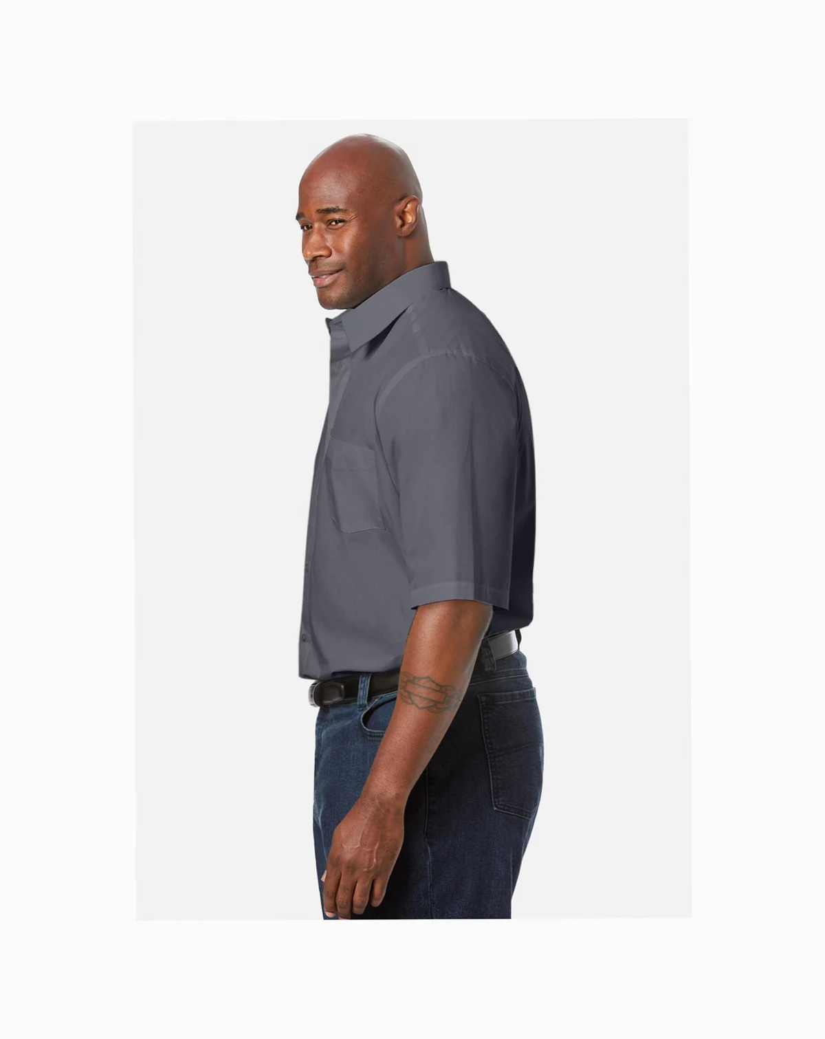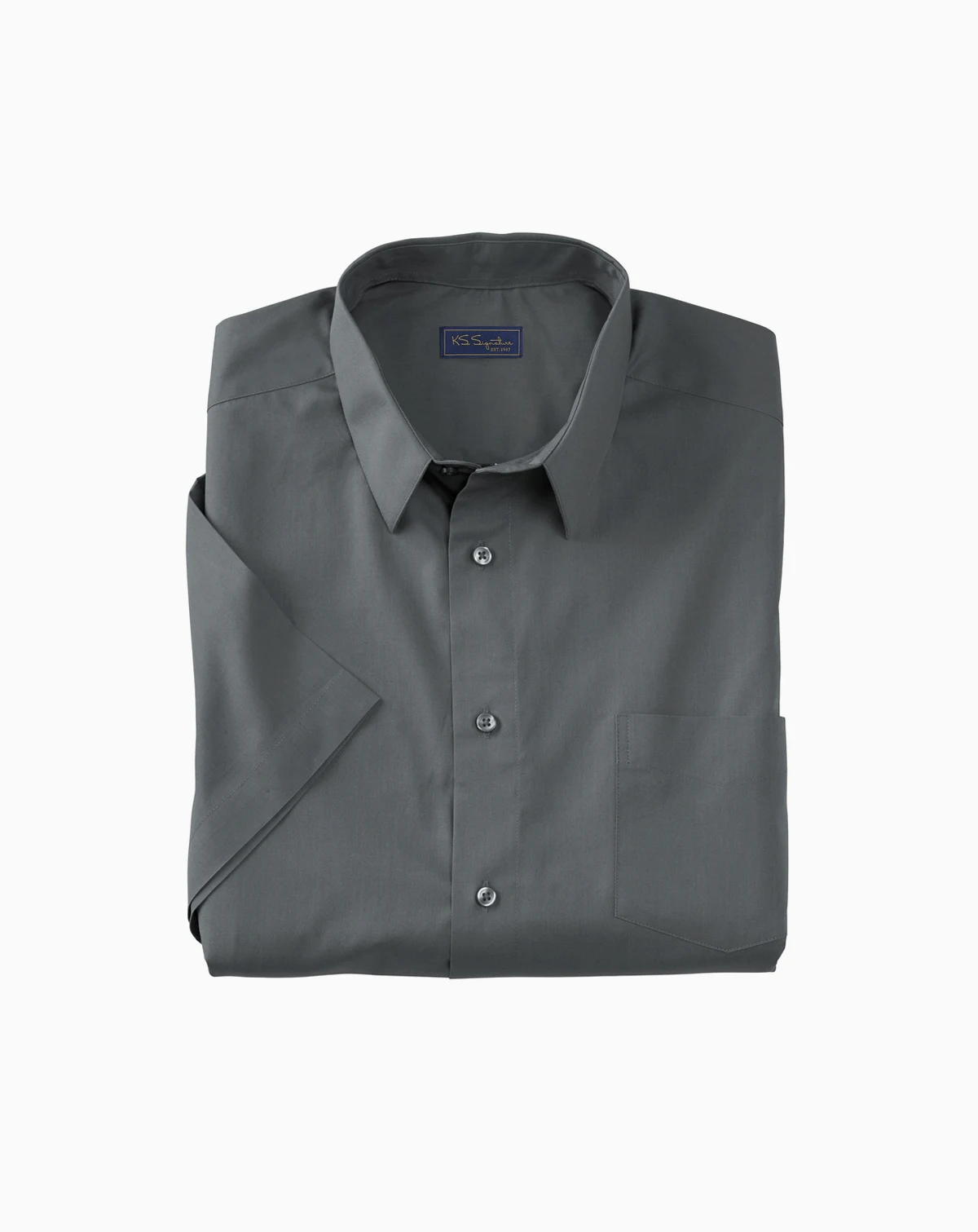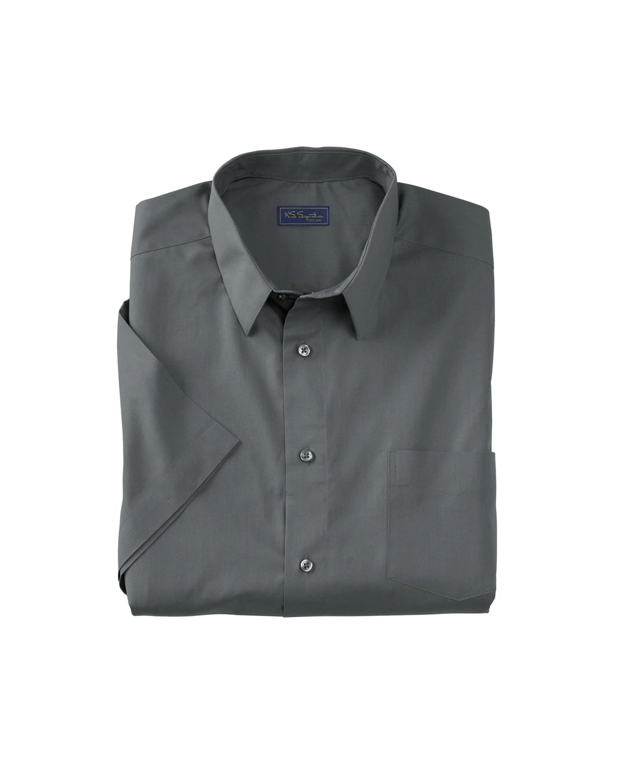 Our KS Signature Wrinkle-free short-sleeve dress shirt is designed to resist wrinkles and features a stain-resistant finish. It stays fresh-pressed all day, no matter what your schedule holds. Relaxed fit. Wrinkle and stain resistant. Dyed-to-match buttons. Back yoke with side pleats. Big length abt. 34" Tall length abt. 36". Easy-care cotton/polyester. Machine wash cold tumble dry low. Imported