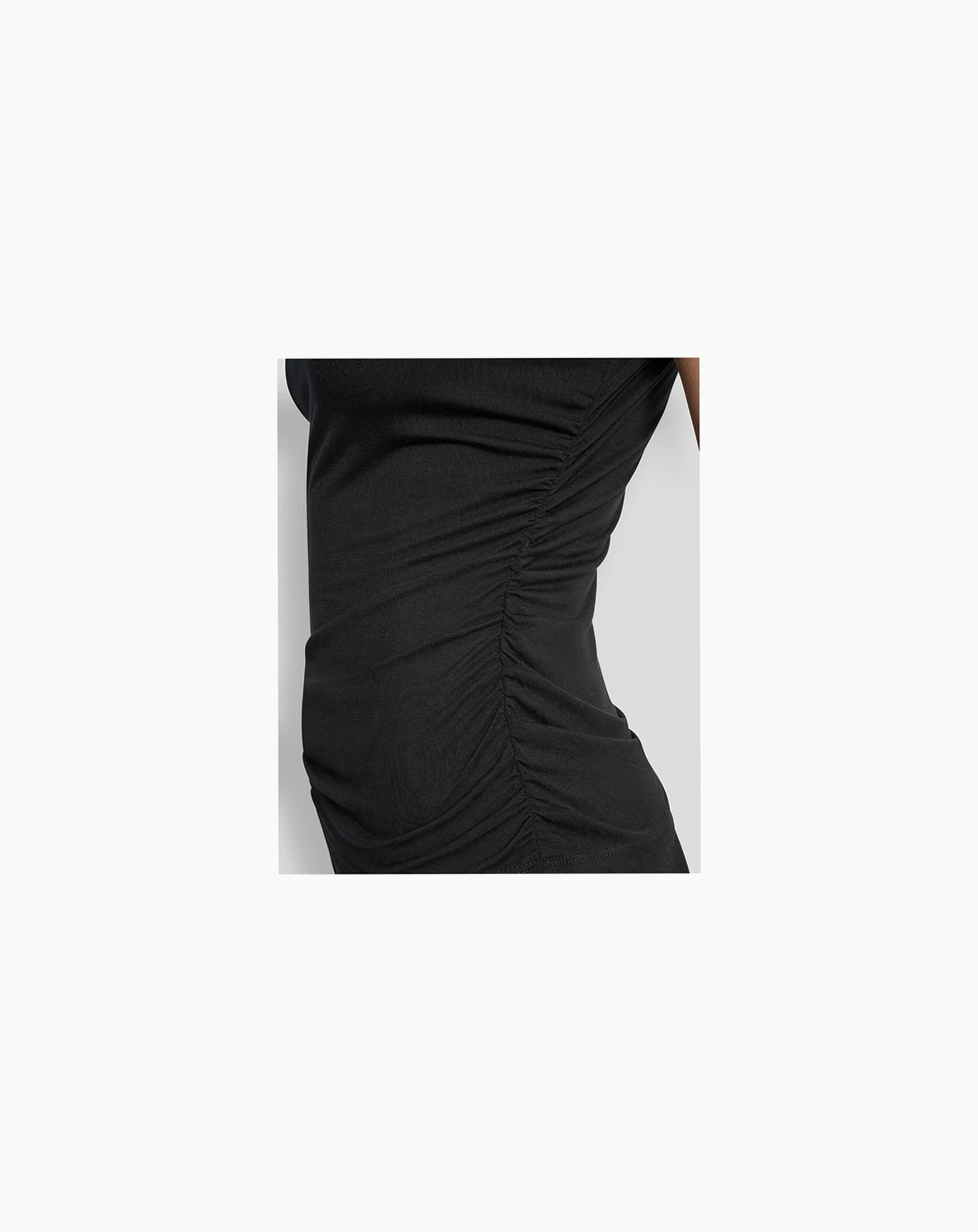 Model wears size S; Runs small; Side ruching; Approx. 22" long; Petite designed to fit and flatter 5'4" and under frame