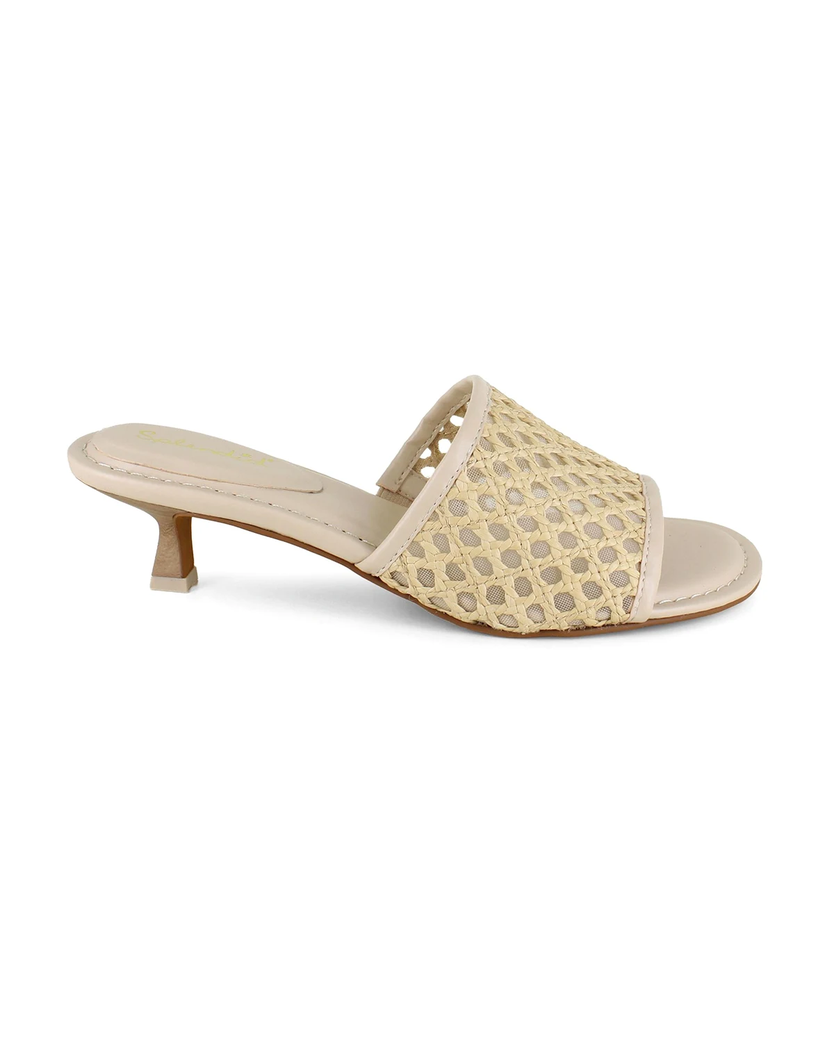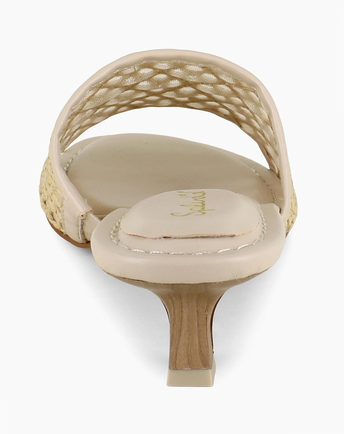 The Splendid Heidi is a sleek women's kitten heel sandal featuring a woven raffia one band upper for an effortlessly polished, warm-weather look.