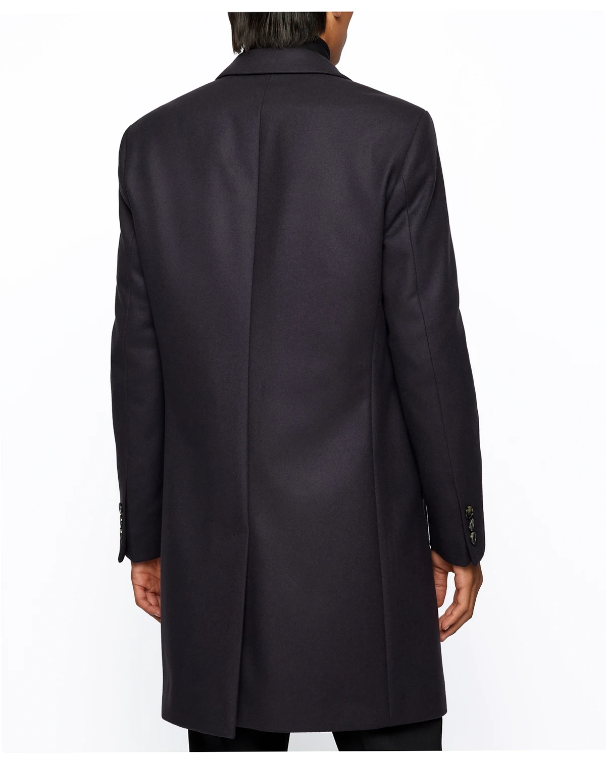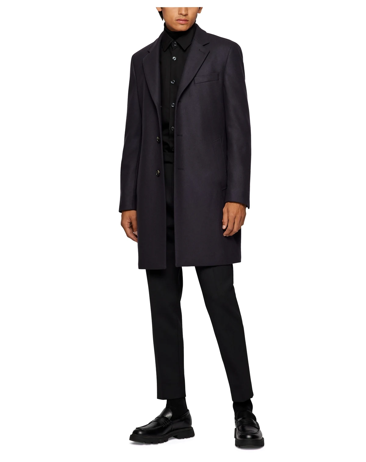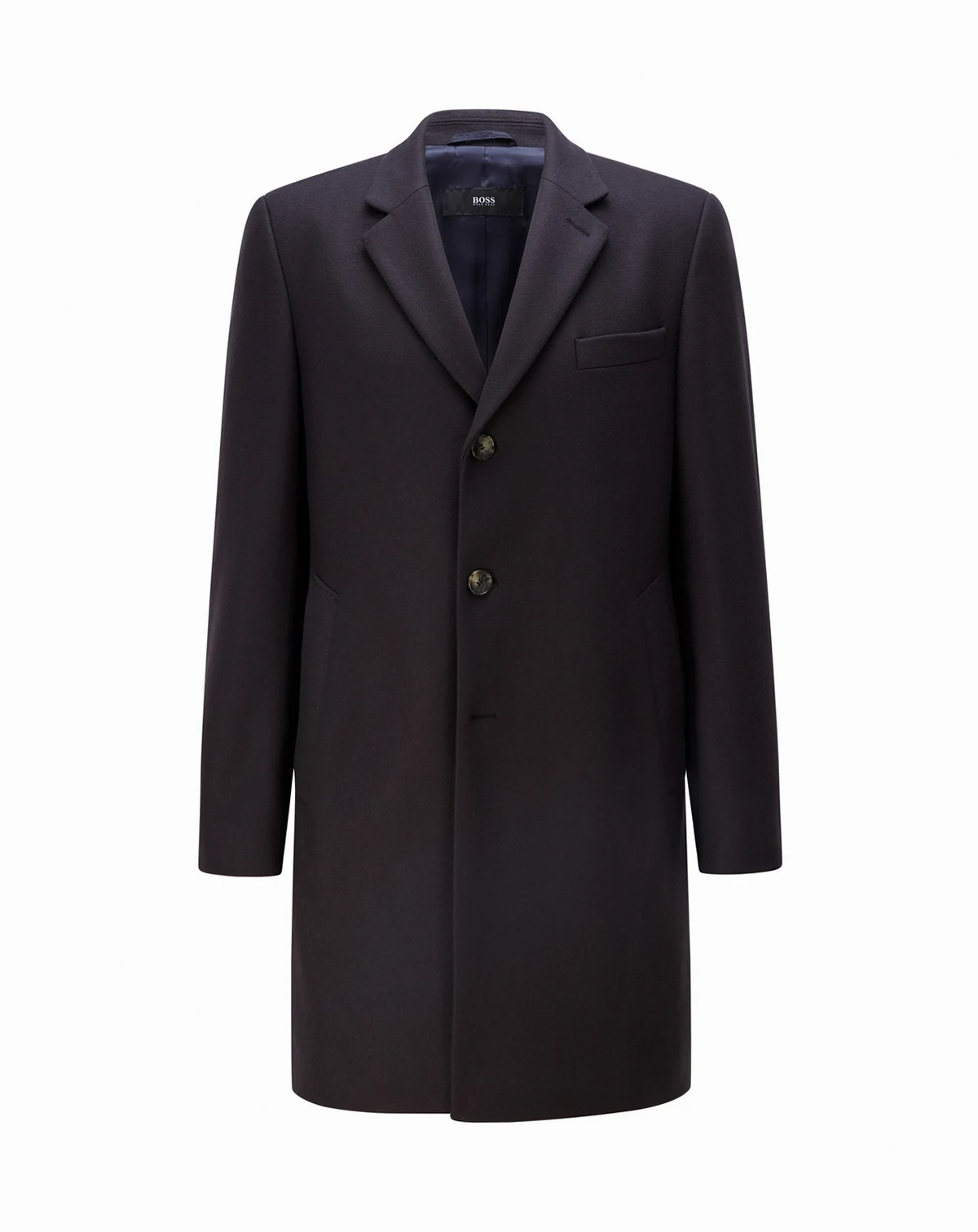 A softly constructed coat in a blazer style by BOSS Menswear. This formal coat is crafted in a wool-rich blend with a solid weave and is offered in a defined fit for a sleek silhouette. Welt pockets and notch lapels add the finishing touches to this business-ready design.