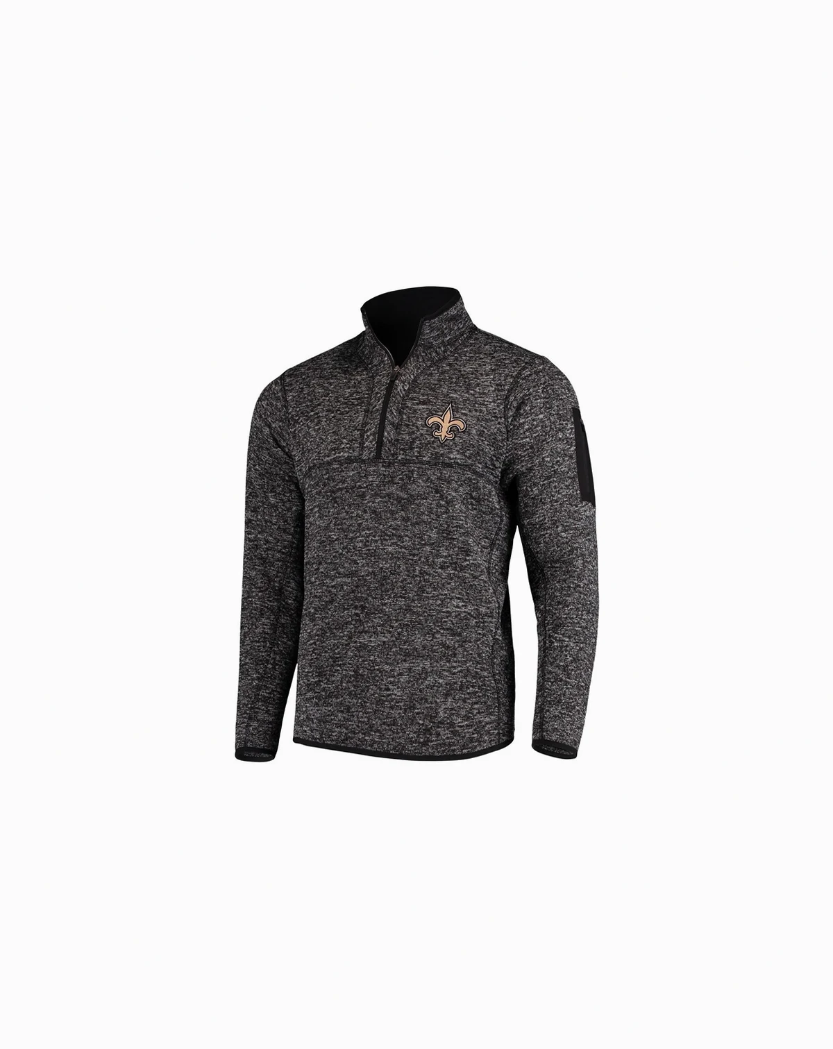 Elevate your New Orleans Saints style with this Antigua Fortune Quarter-Zip Pullover Jacket. This midweight pullover features a heathered fabric and embroidered New Orleans Saints graphics. The quarter-zip closure and welded sleeve pocket make it easy to access your essentials, while the brushed back keeps you comfortable. Whether you're at the Superdome or watching from home, this pullover will keep you warm and stylish while you cheer on the New Orleans Saints.
