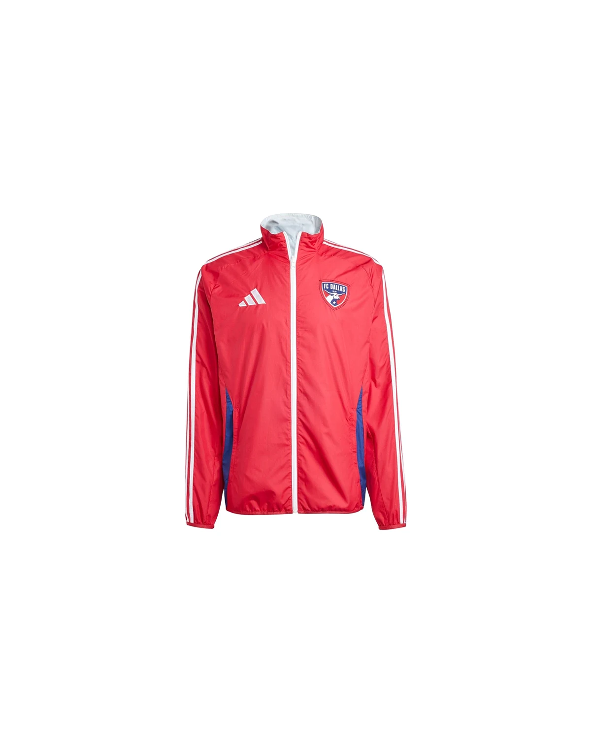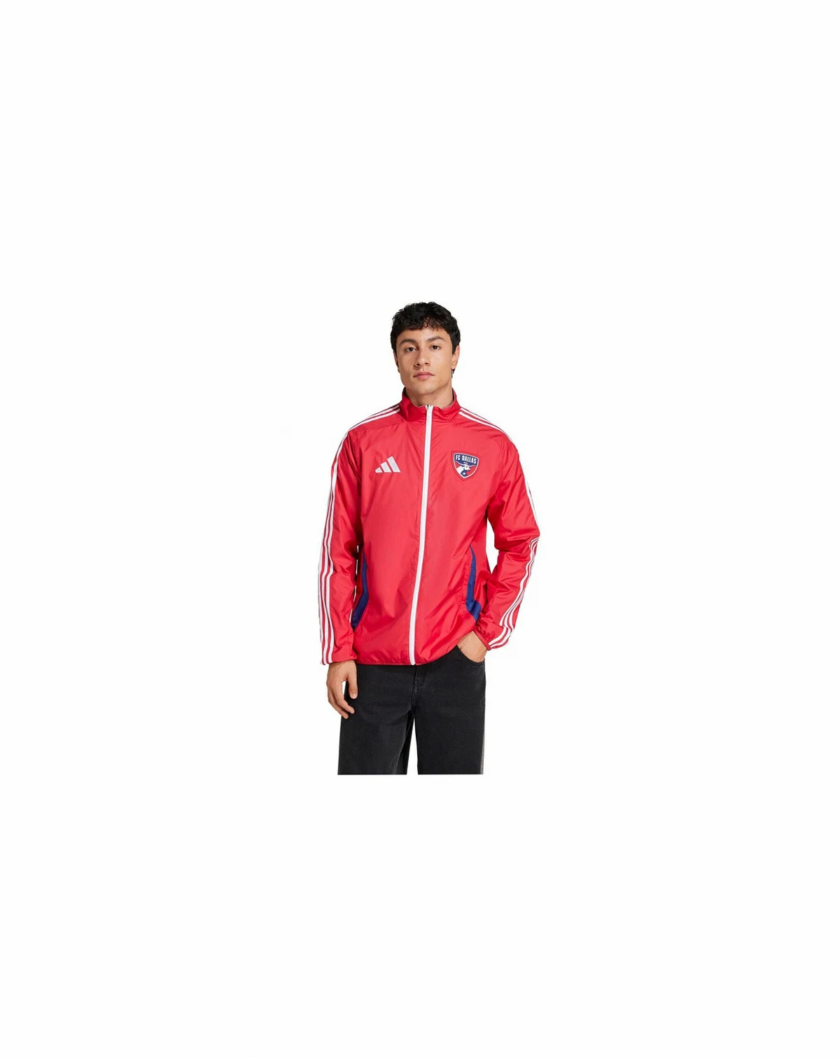 Embrace your FC Dallas pride with this 2025 Anthem Reversible Full-Zip Jacket from Adidas. This reversible jacket offers two distinct looks in one, featuring screen print graphics on one side and a sublimated design on the other. Made from materials, it boasts a comfortable midweight construction ideal for moderate temperatures, while elastic cuffs and a bottom hem offer a secure and personalized fit.