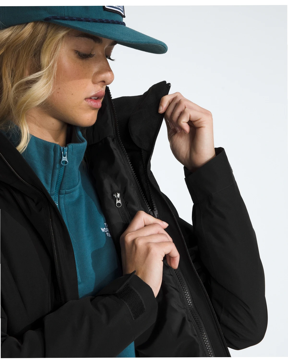 Wintry conditions meet versatile performance in this triclimate jacket from The North Face, pairing a waterproof mono shell with a warm insulated liner. Snap-in compatibility allows separate wear based on weather, while the adjustable hood delivers customizable coverage.