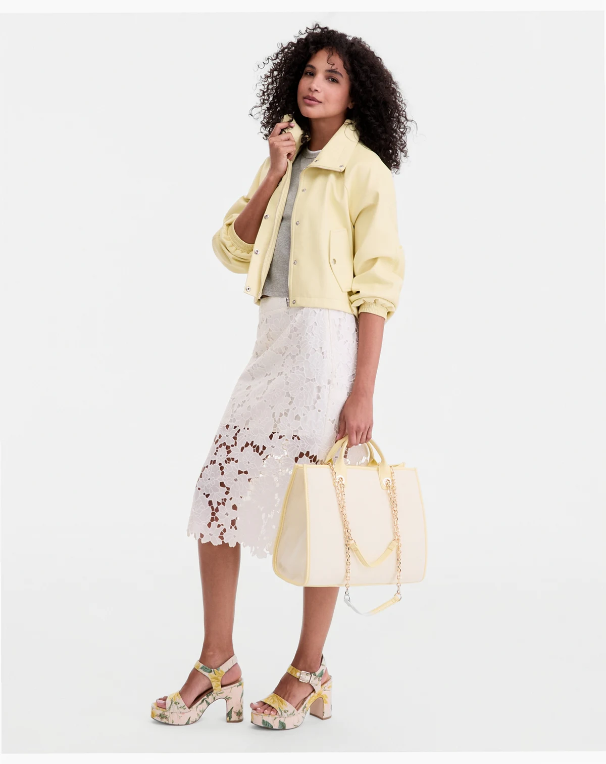 Complete your look with our faux-leather jacket, styled with a cropped hem and stand collar. ABOUT THE BRAND: On 34th was designed for and with women like you. Made for your body, your style, and your truth. As your wardrobe's BFF, these mix-and-match pieces work with everything in your closet.