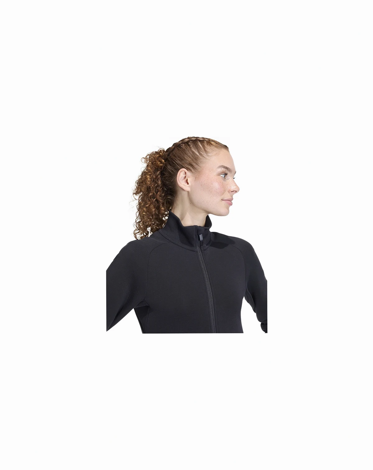 Tailored with a slim fit, this track top from adidas features a sleek stand-up collar and full-zip front. The streamlined design offers a modern, athletic look.