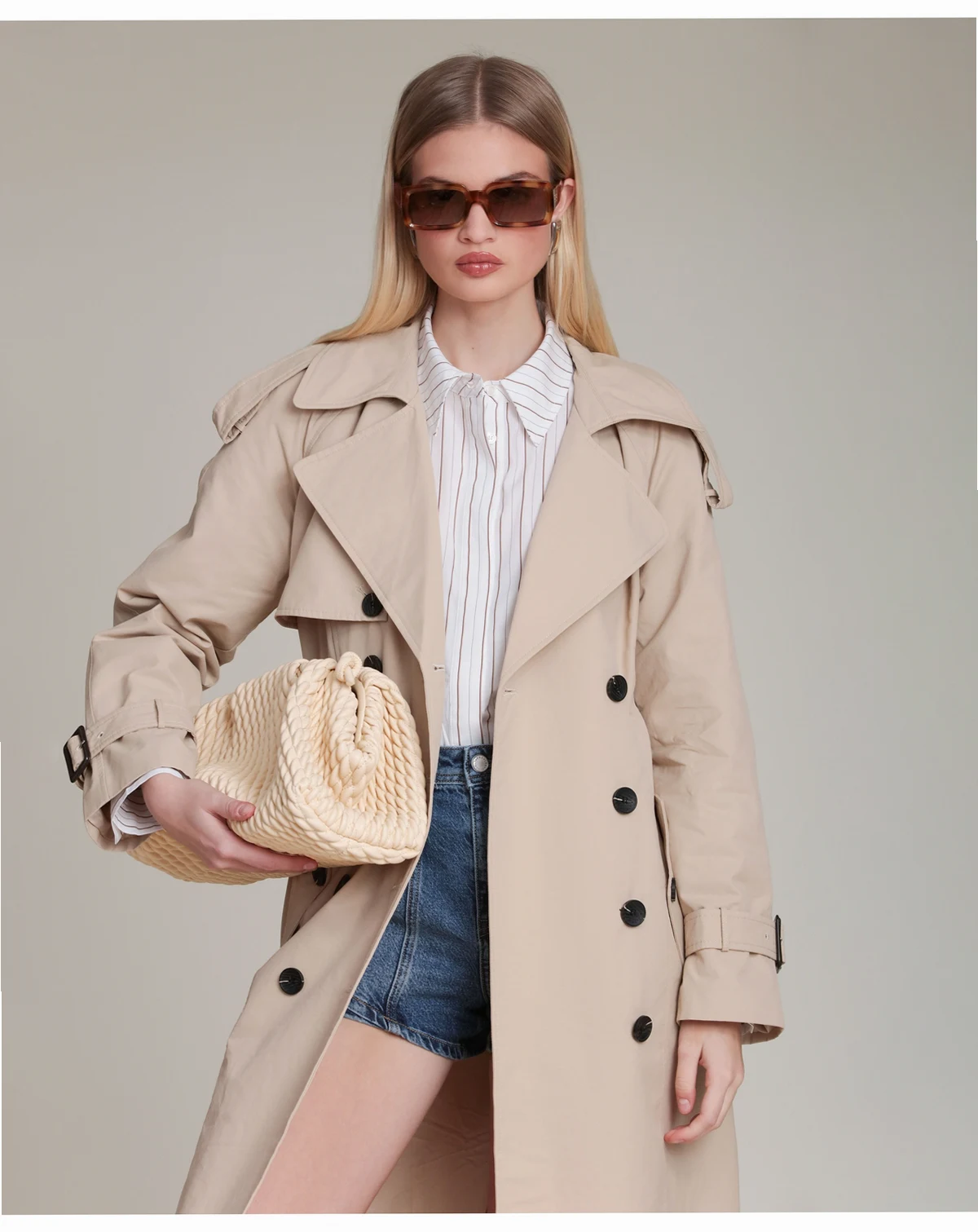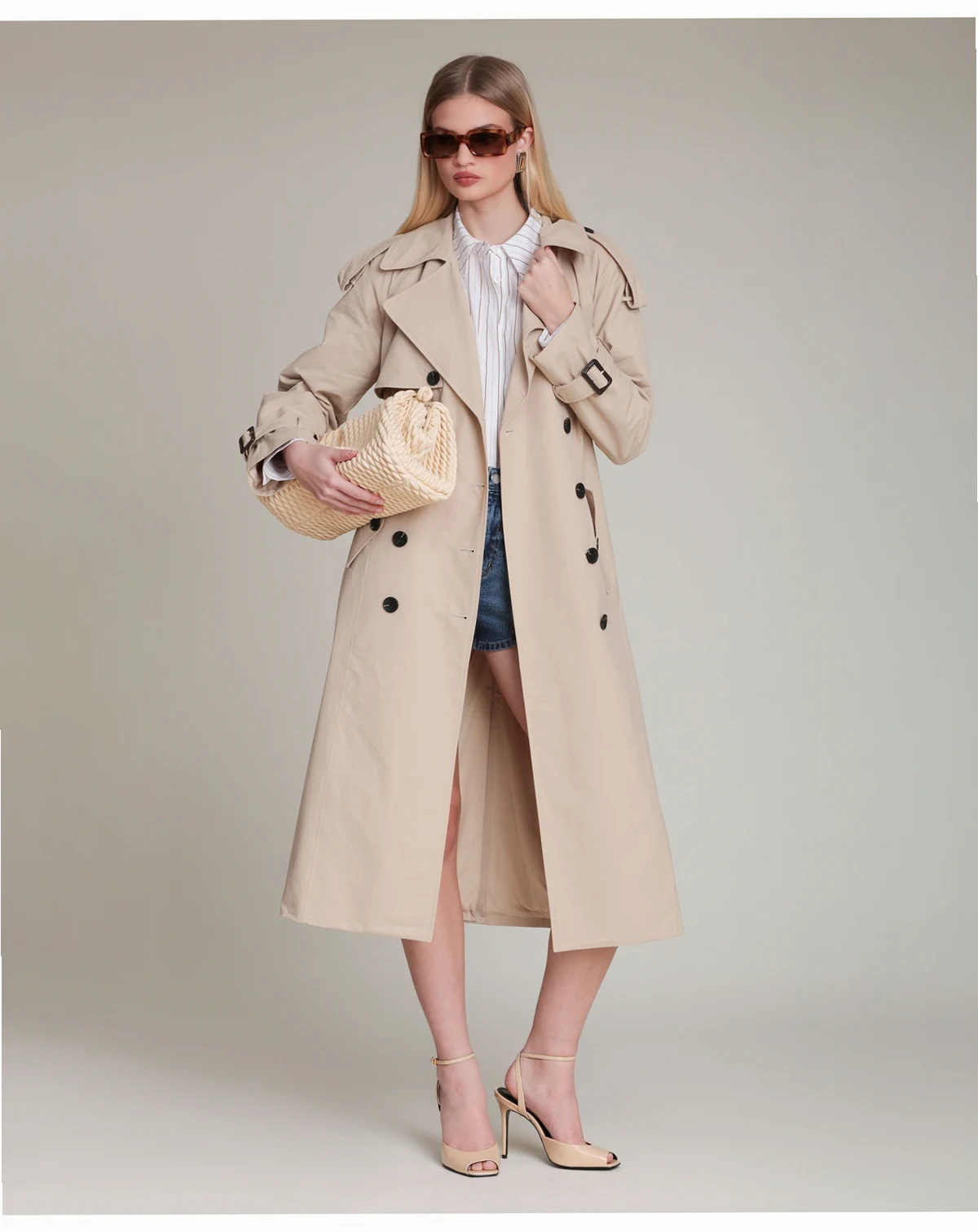 This Avec Les Filles trench coat delivers classic sophistication with a modern twist. Featuring a timeless double-breasted design, the belted waist and oversized lapels create a flattering silhouette, while the neutral wheat tone makes it the ultimate layering piece. Style it over anything for an effortlessly chic look that works from day to night.