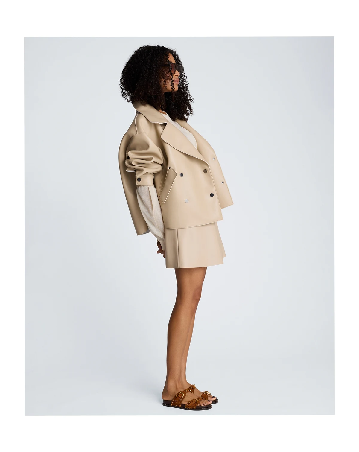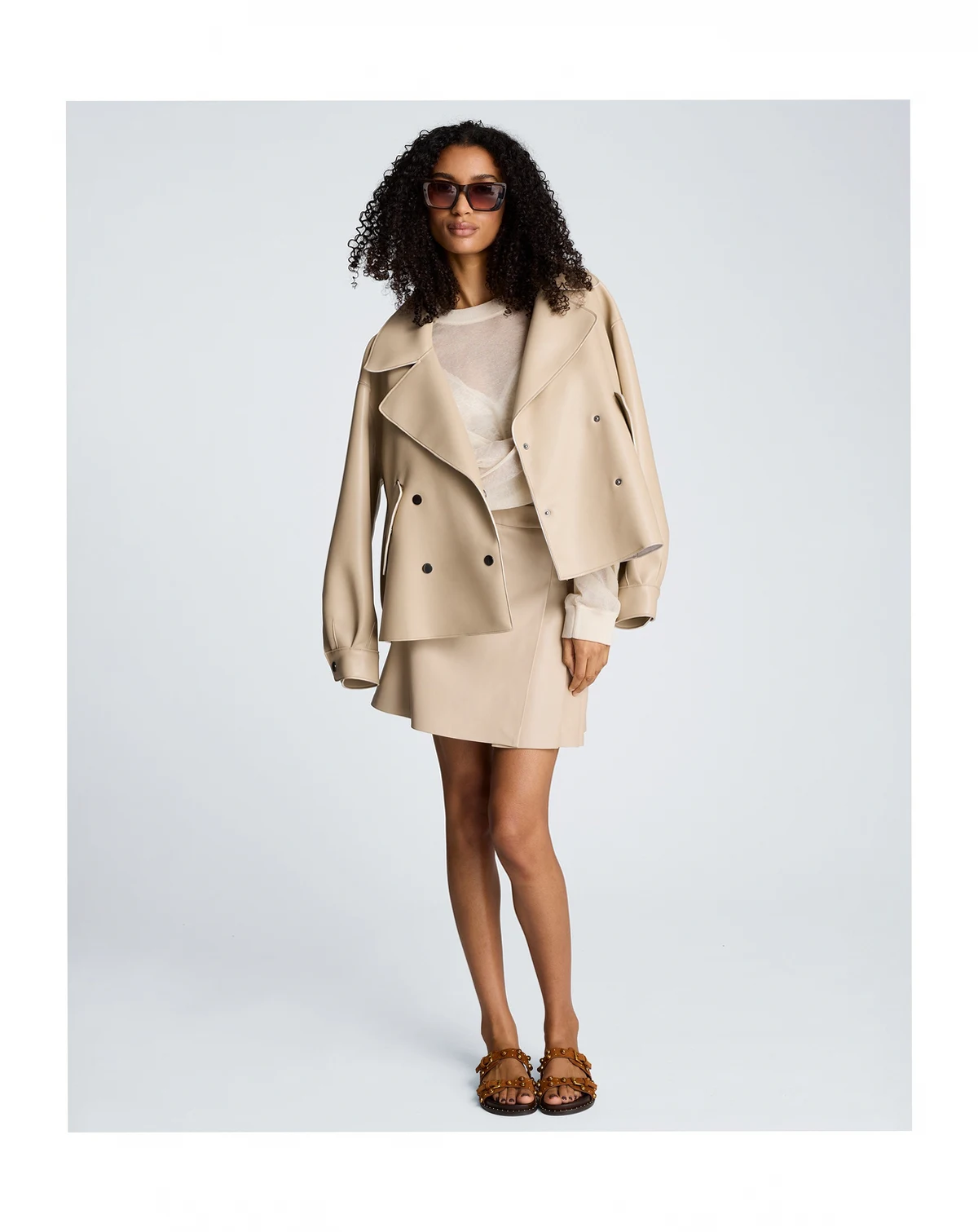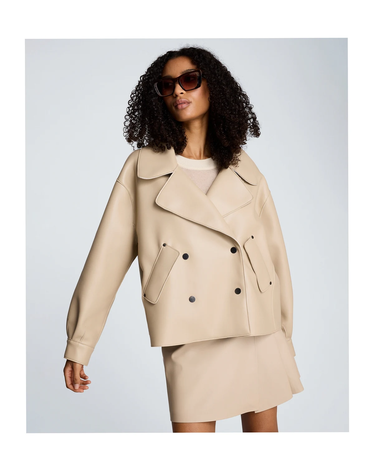 A classic trench gets a modern twist in this Kenneth Cole jacket with a cropped silhouette and snap-front closure. Practical flap pockets and a sharp notched collar add a structured, contemporary edge.