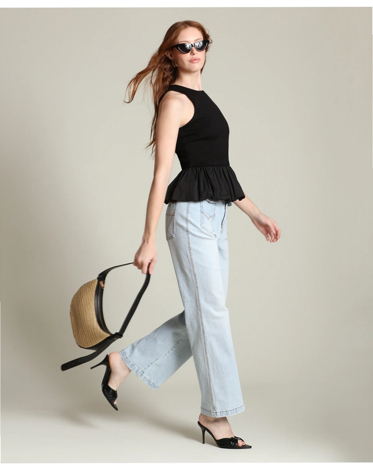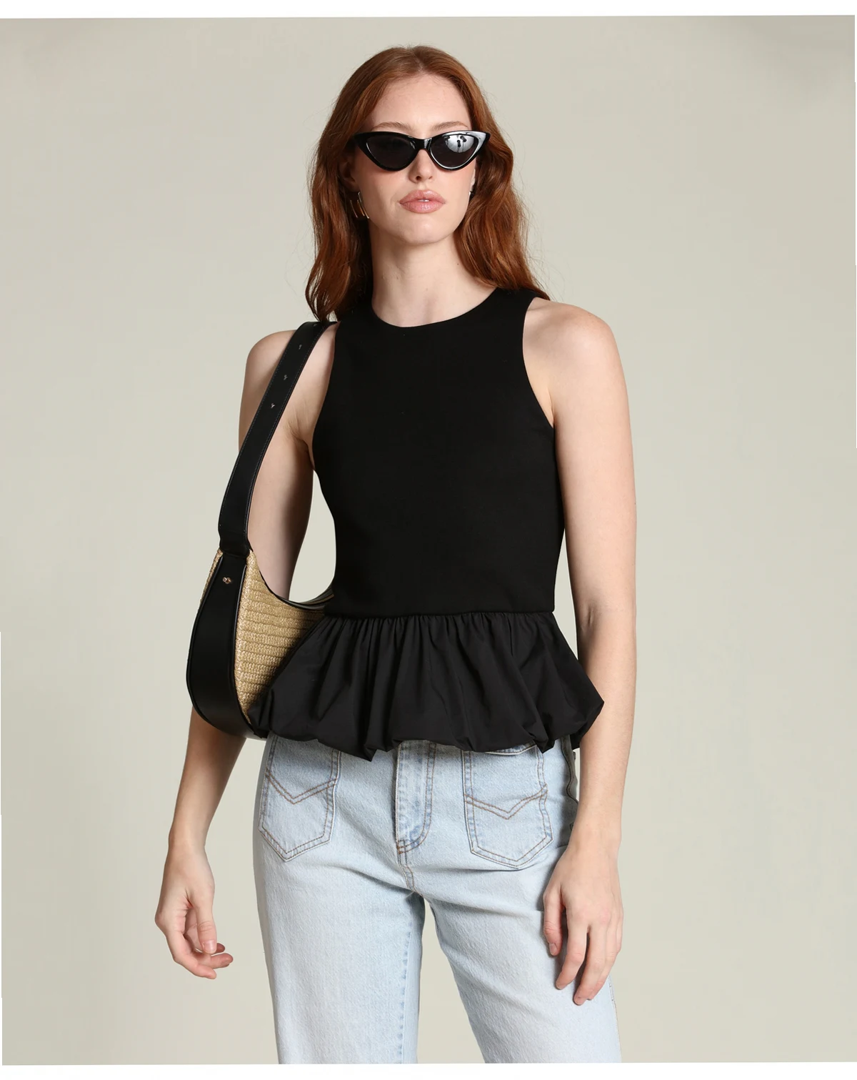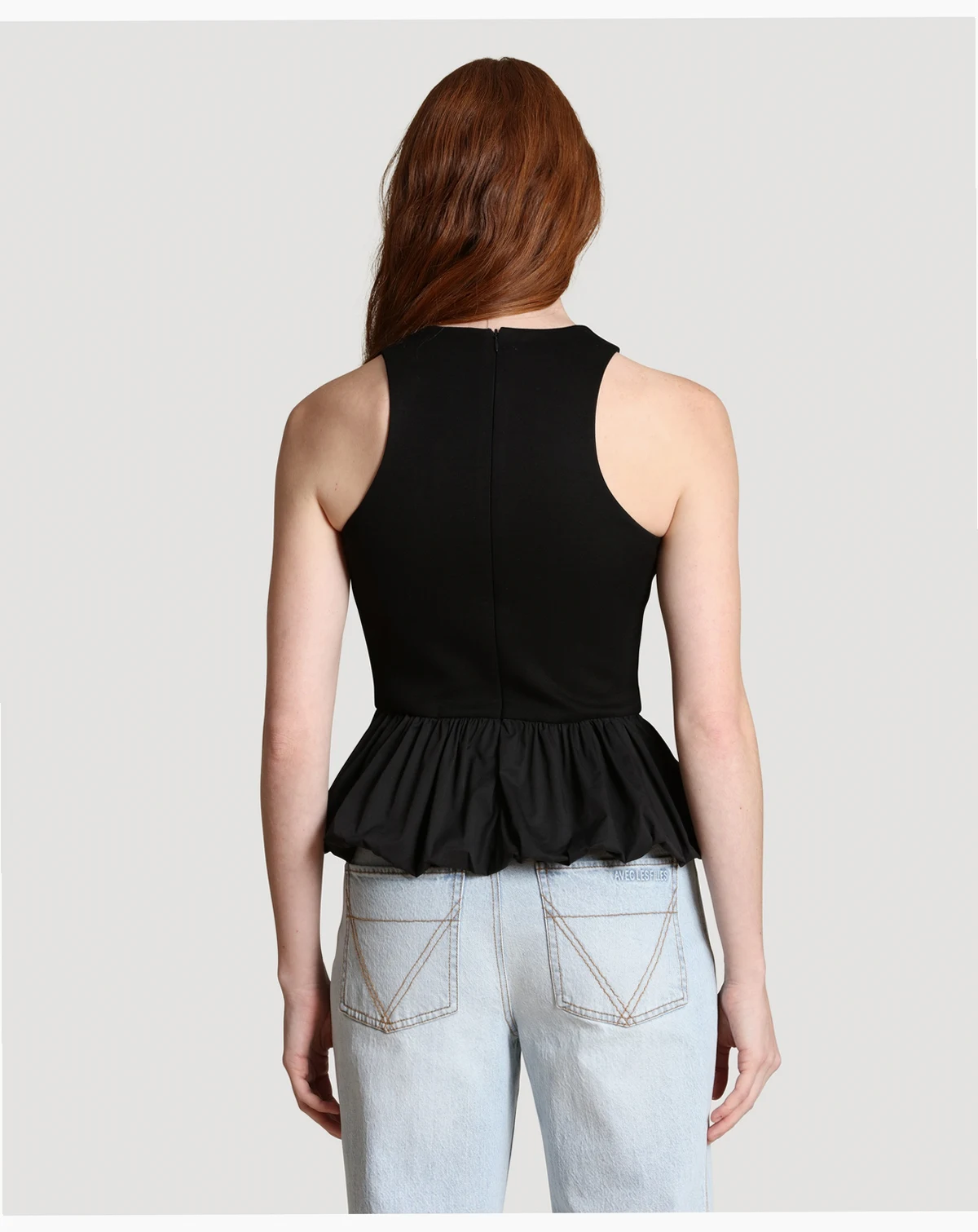 Highlighting a peplum silhouette, this tank top from Avec Les Filles features a scoop neckline for a flattering look. Its sleeveless design offers cool and comfortable wear.