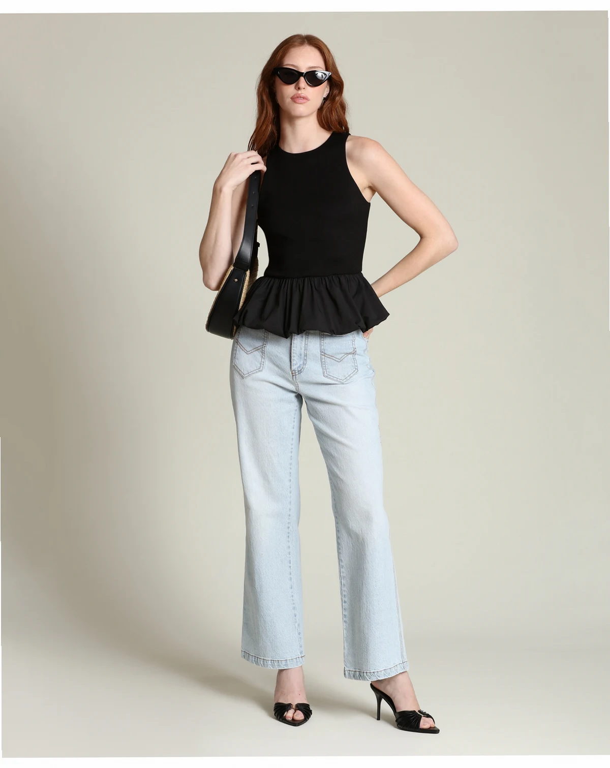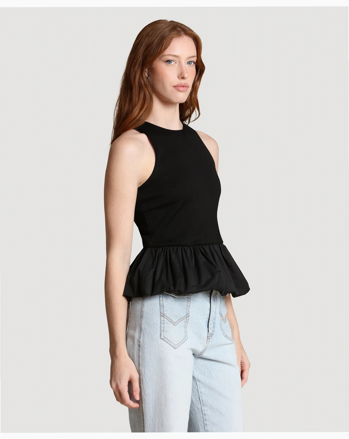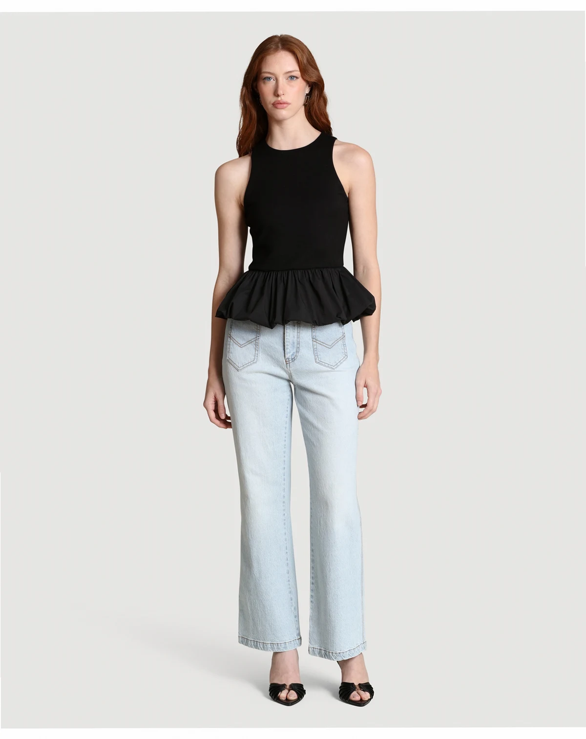 Highlighting a peplum silhouette, this tank top from Avec Les Filles features a scoop neckline for a flattering look. Its sleeveless design offers cool and comfortable wear.