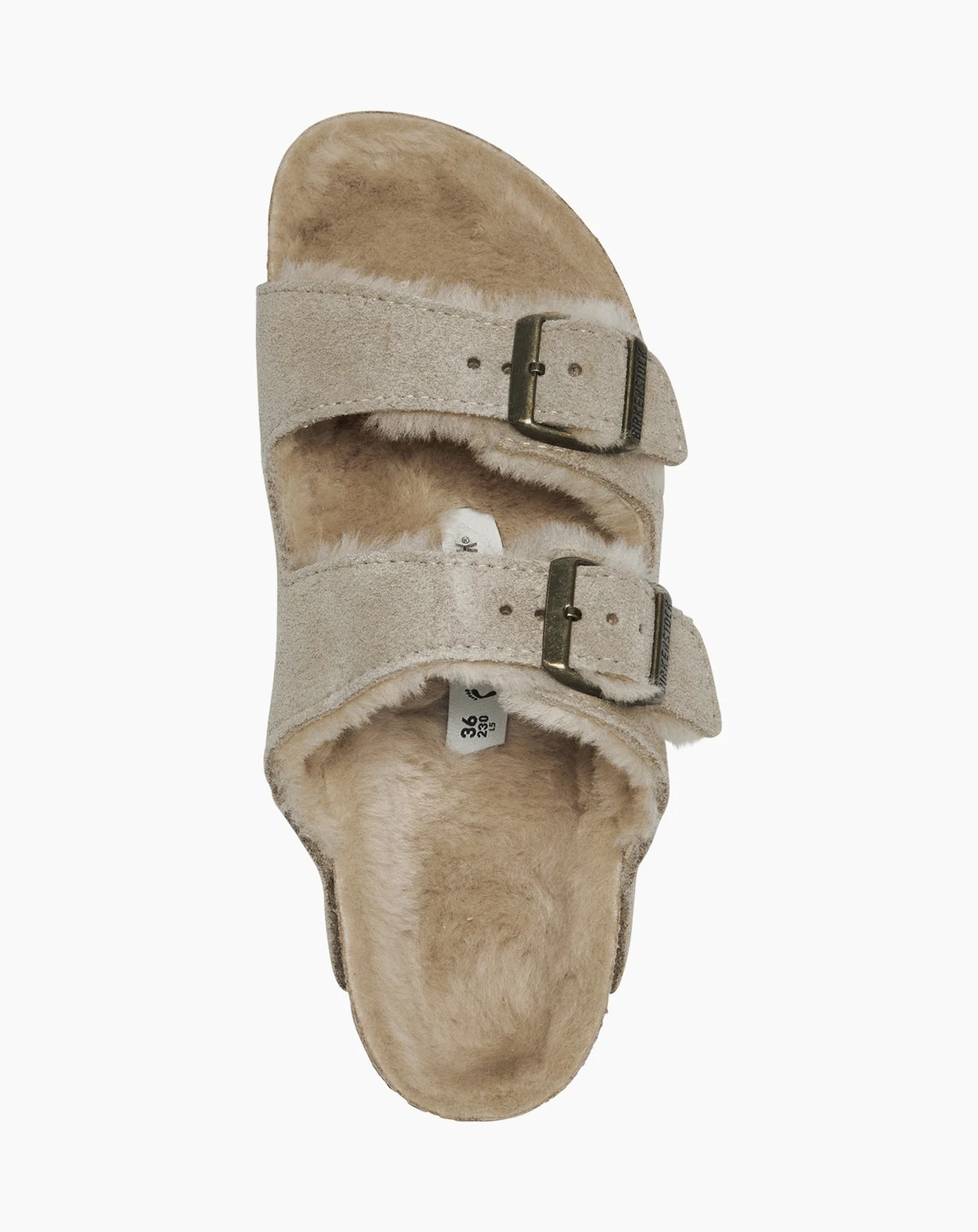 The Women's Birkenstock Arizona Shearling Suede Leather Sandals are a classic, reimagined for the days when coziness comes first. The tried-and-true two-strap silhouette is perfect for chilly temperatures thanks to supersoft shearling along the footbed and a suede upper, promising unparalleled comfortability.