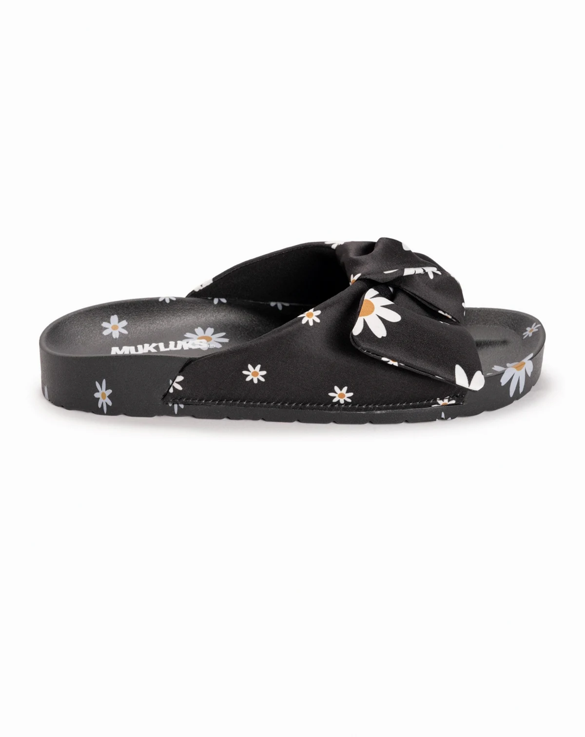 Kick back this summer in MUK LUKS Women's Island Sandals. These vibrant sandals offer comfortable insoles that will mold to your foot while fun patterns allow you to express your individuality. Wipe with damp cloth. Do not bleach. Lay flat to dry. Imported. -Non-Skid Outsoles -Lightweight -Bow Detail -100% Polyurethane Upper -100% Polyester Lining - 100% PCU Sole - Multiple Color Options -Molded Footbed - US Women's Whole Sizes 6-11