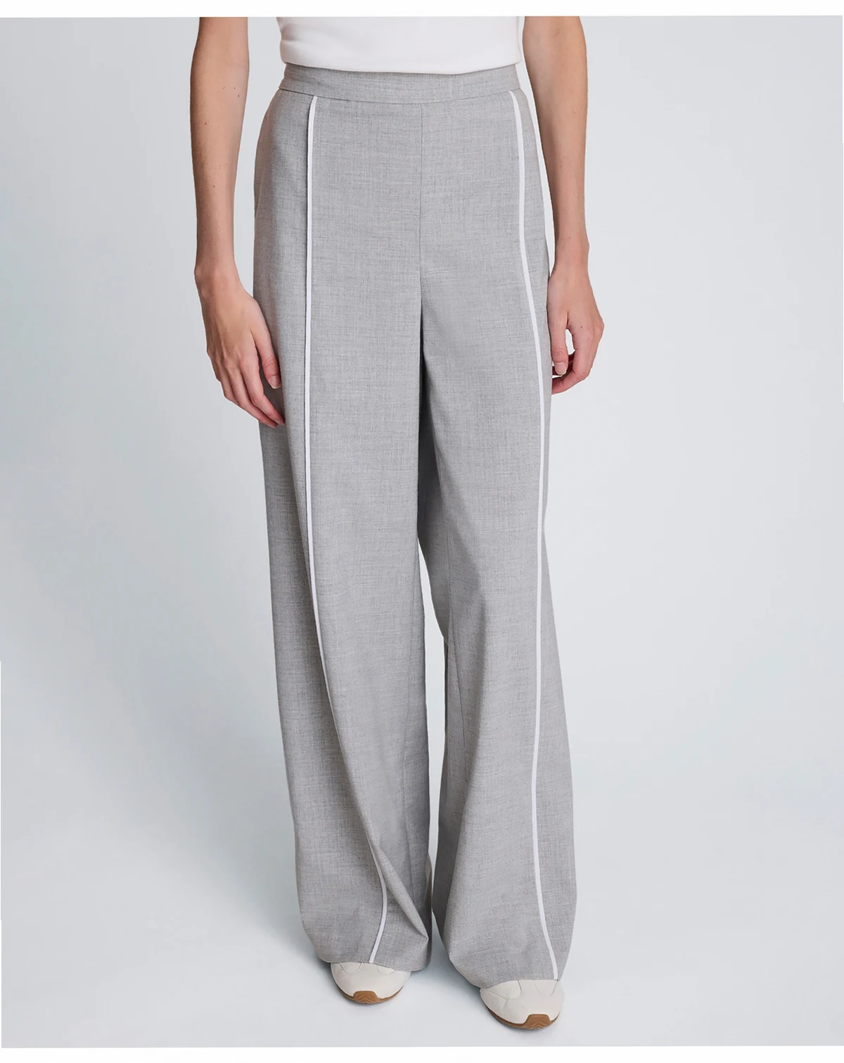 Add a hint of polished touch to your outfit with these wide-leg pants from Kenneth Cole. The piping detail enhances its style quotient, while the elastic back waistband offers a comfortable, secure fit.