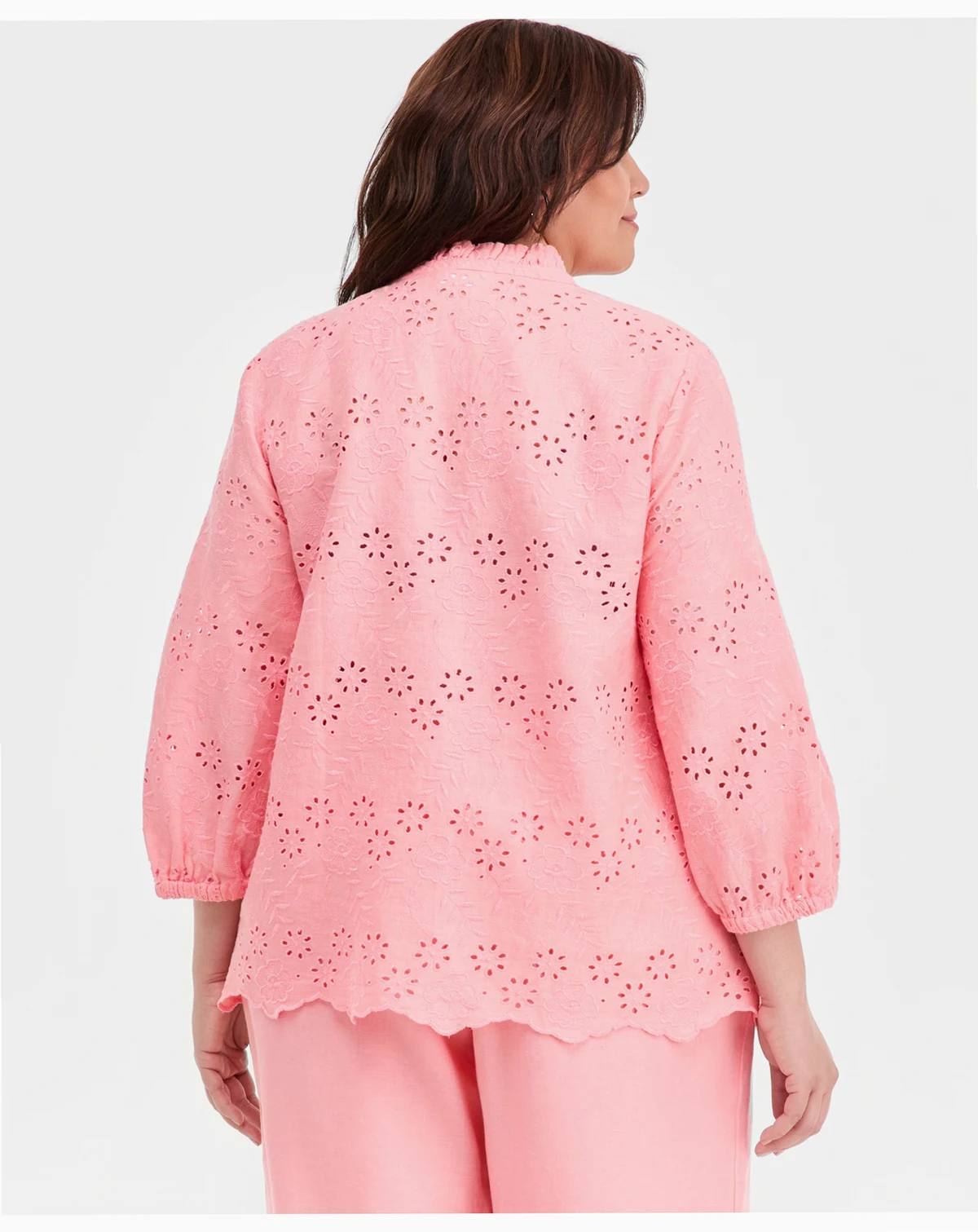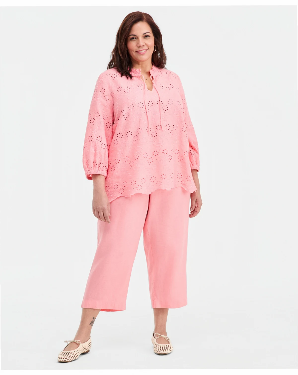 Plus Size 100% Linen Eyelet Tie-Neck Top, Macy's Exclusive
