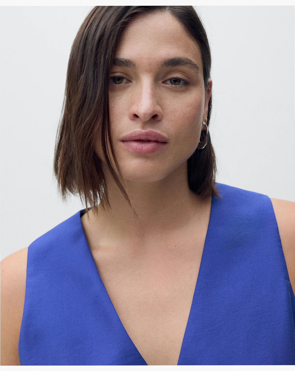 Flow into warmer days with the Modal V-Neck Top from Mango. Made from modal fabric, this top features fitted design with V-neck, sleeveless cut, wide straps, front pleat detail, and Back zip fastening.