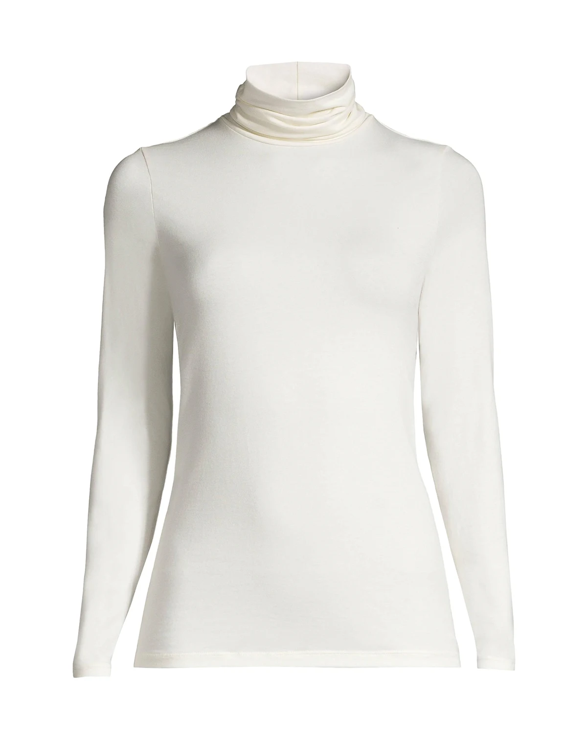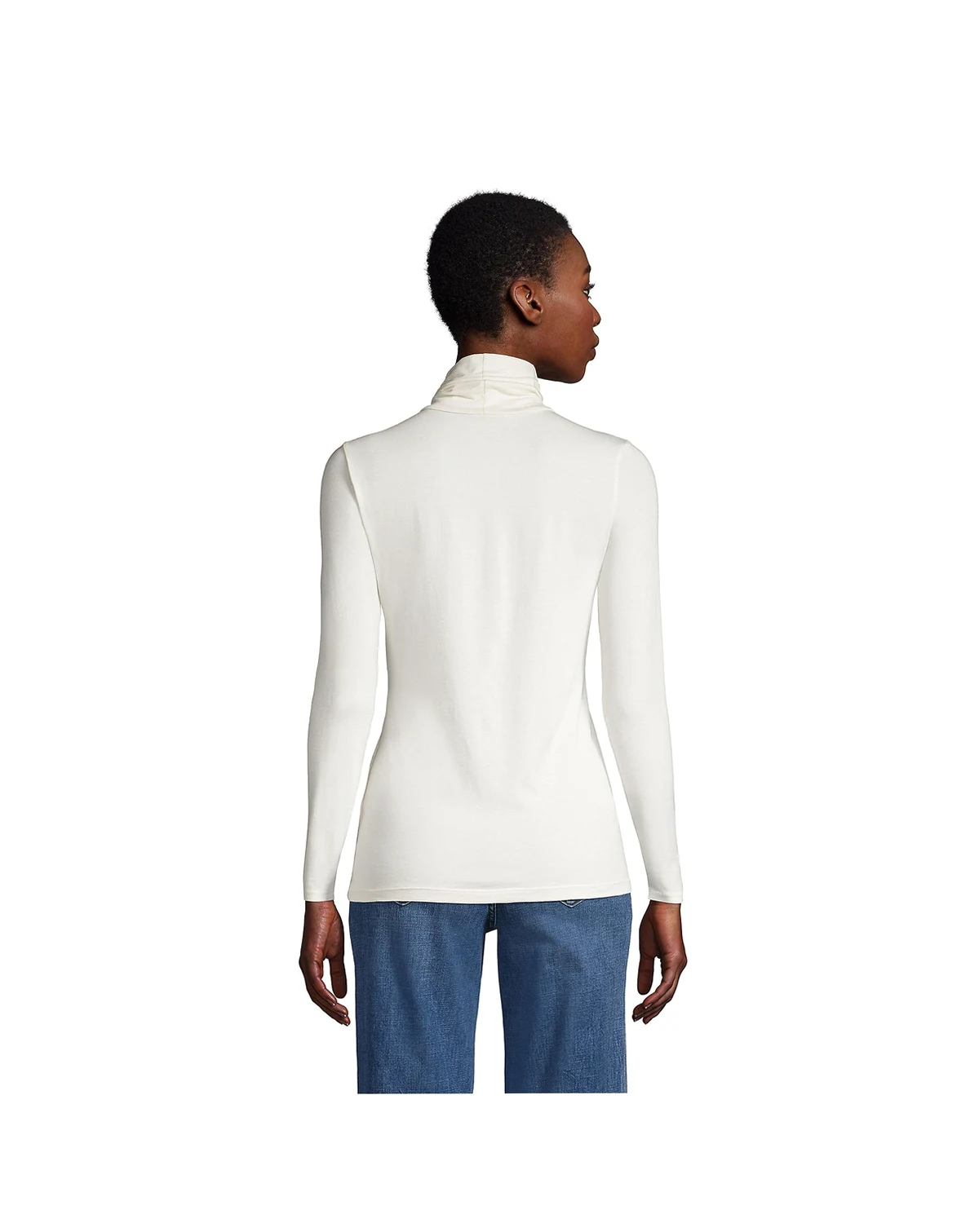 This Lands' End Women's Lightweight Fitted Long Sleeve Turtleneck is designed with your style and comfort in mind. Made from a soft blend of cotton and rayon fabric this turtleneck is ultra-soft and smooth never scratchy ensuring you always feel as good as you look. And you will look good. Curved to highlight your natural shape this women s top flatters that slimming silhouette you love. Plus it makes a warm and cozy base layer during colder months. With just enough stretch for added mobility you can keep warm while keeping active outdoors and inside.