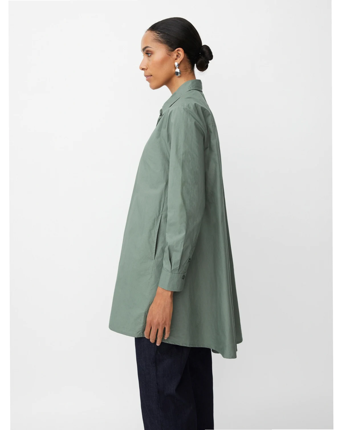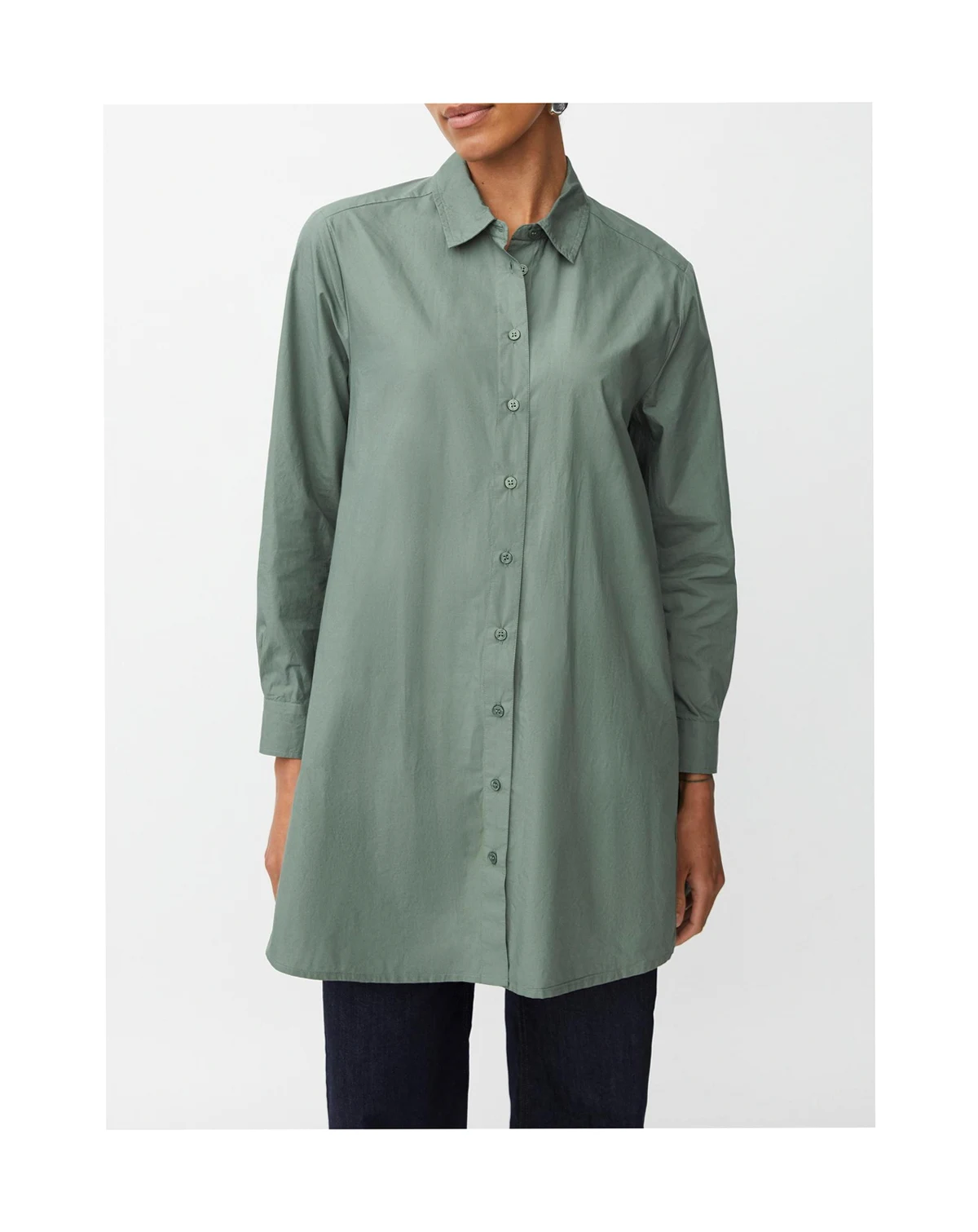 Masai's feminine take on the classic shirt fits perfectly, designed in an A-shape cut with crinkled cotton. The shirt also has long sleeves, a rounded hem, and is longer at the back.