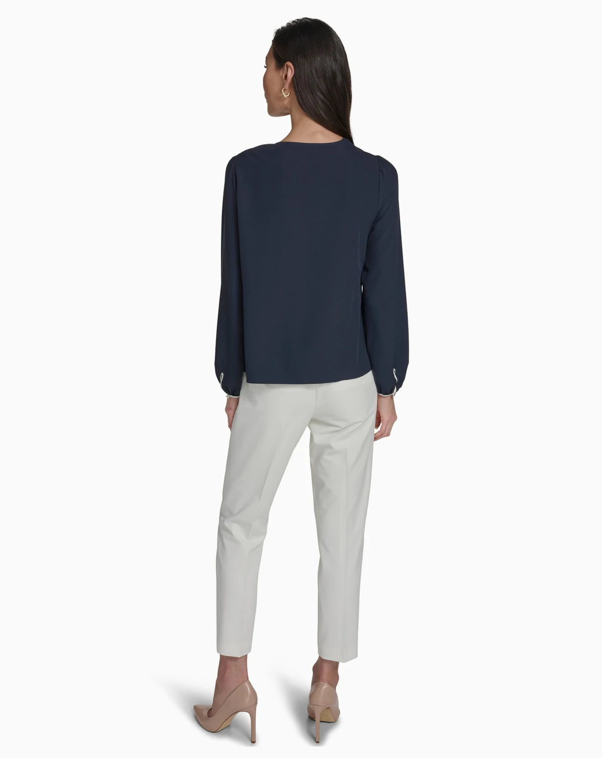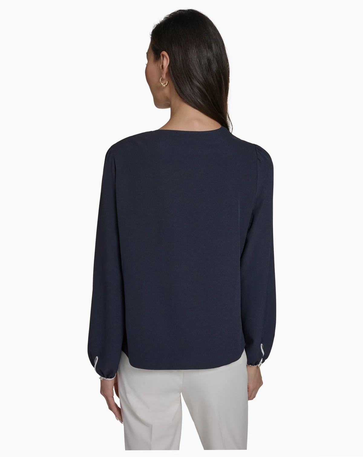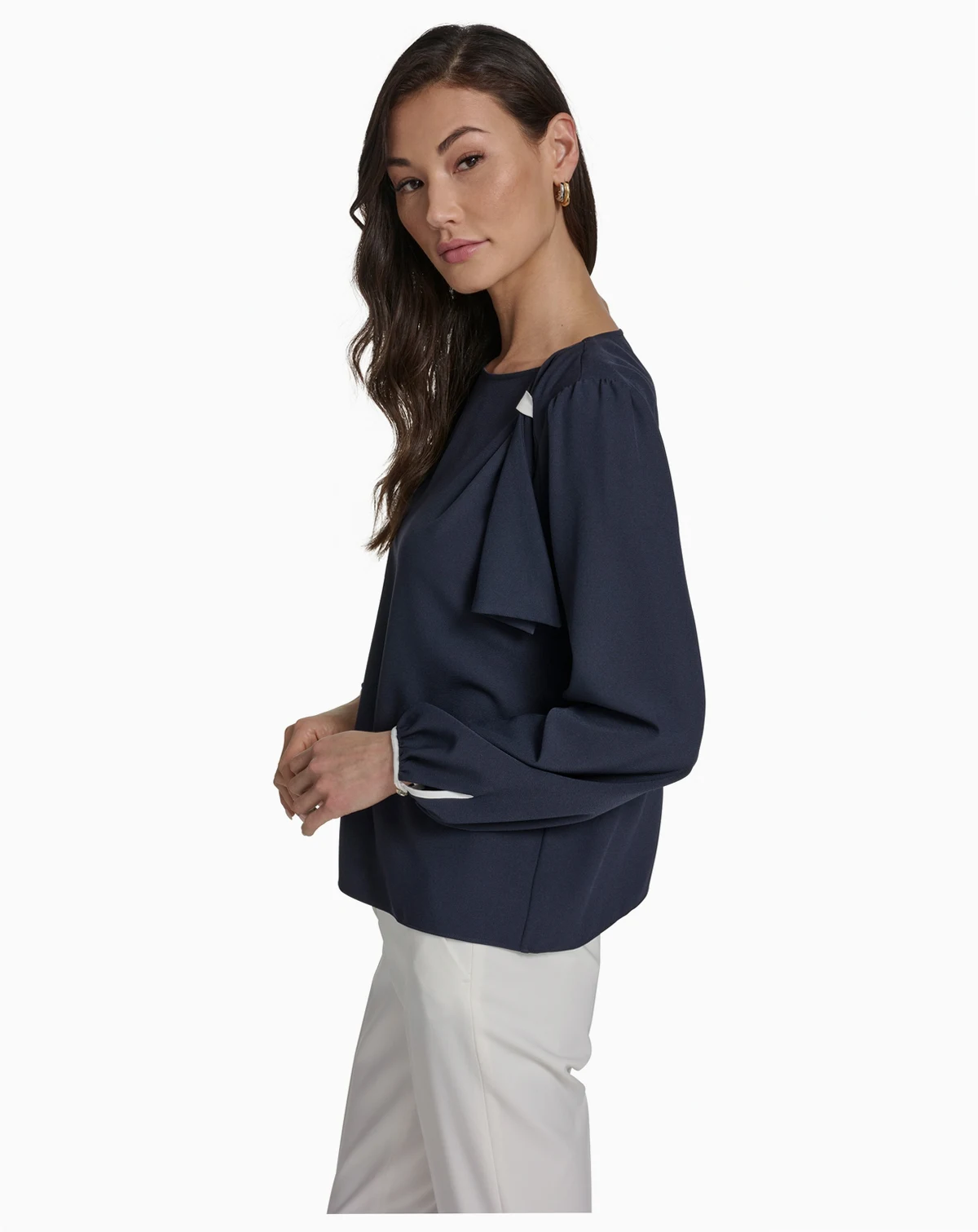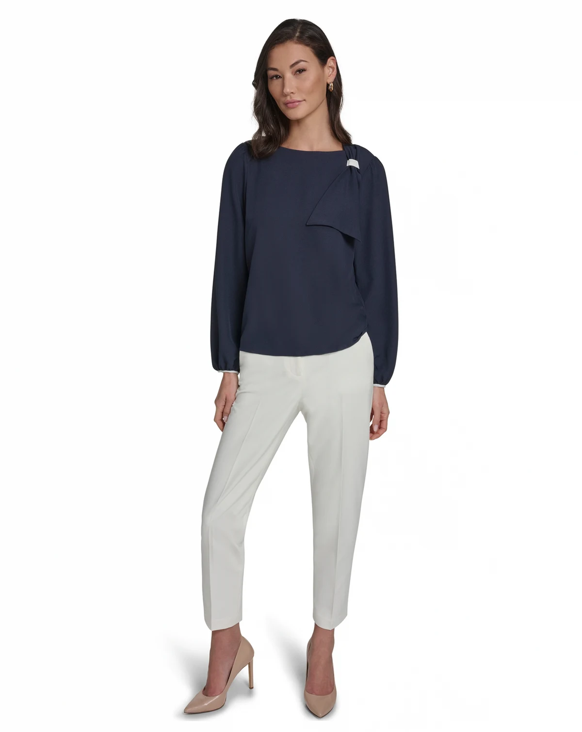Accented with a side tie detail, this top by Tommy Hilfiger features a crew neck and long sleeves for a polished appearance. The pull-on design allows for a comfortable, adjustable fit.