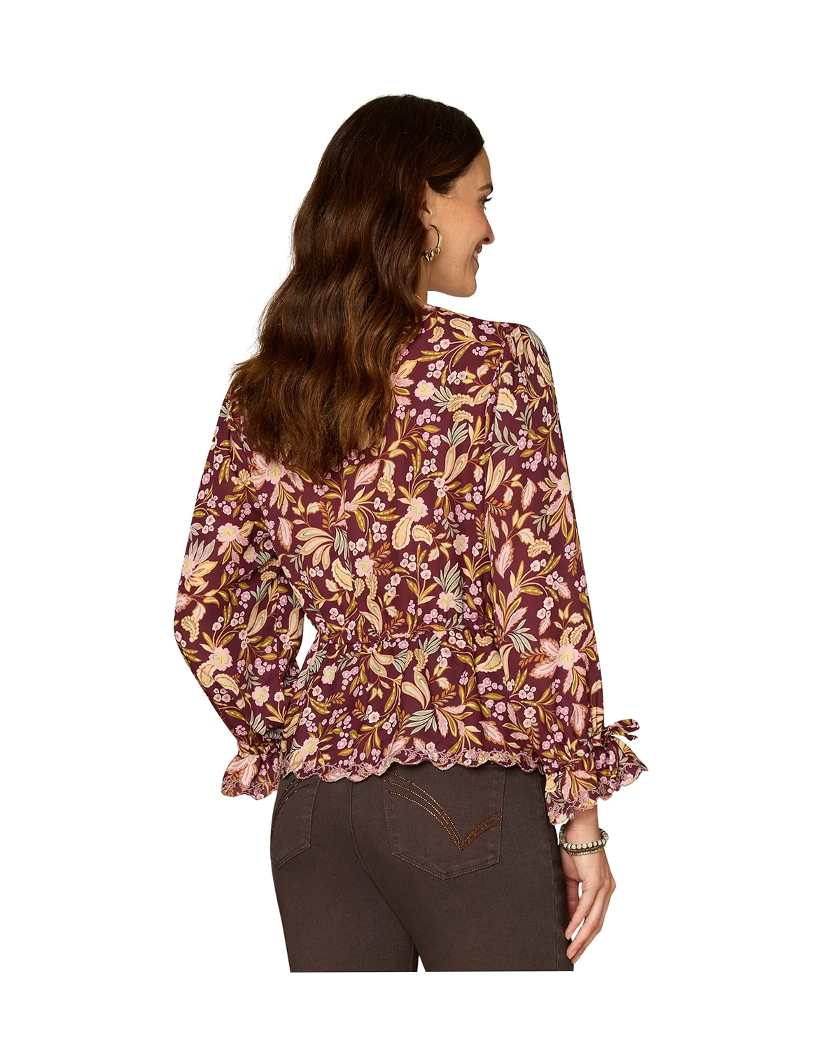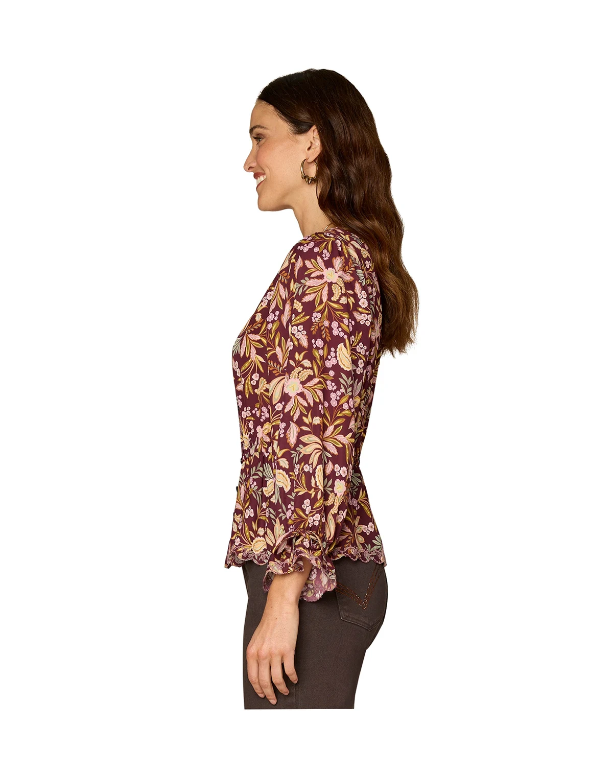Channel feminine charm in this embroidered woven top from Democracy. A V-neckline and long ties create an adjustable and flattering fit. The scallop edge detail offers a delicate and refined finish.