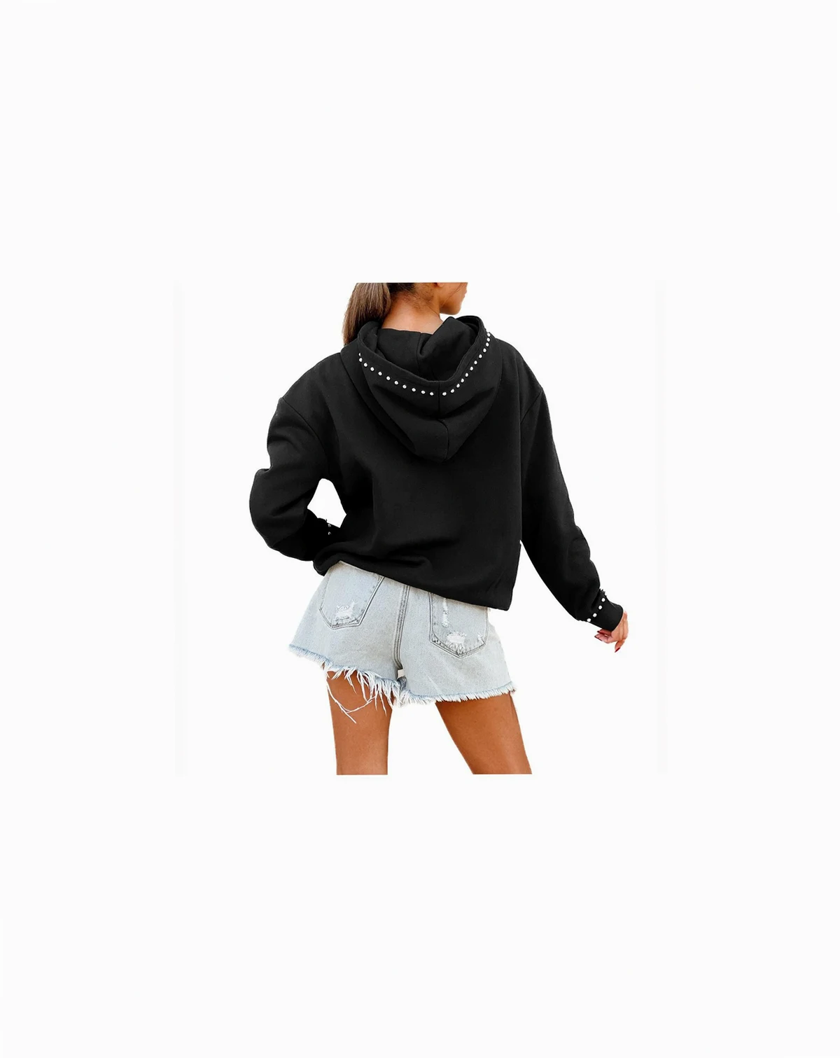 The Women's Gameday Couture Black San Francisco 49ers Catch the Vibe Studded Pullover Hoodie is the perfect way to show your support for the San Francisco 49ers. This midweight hoodie is made of a soft cotton and polyester blend, making it comfortable to wear in moderate temperatures. The front pouch pocket is perfect for storing your essentials, and the screen print graphics and stud embellishments add a touch of style. Whether you're cheering on the 49ers at the stadium or just relaxing at home, this hoodie is sure to keep you warm and comfortable.