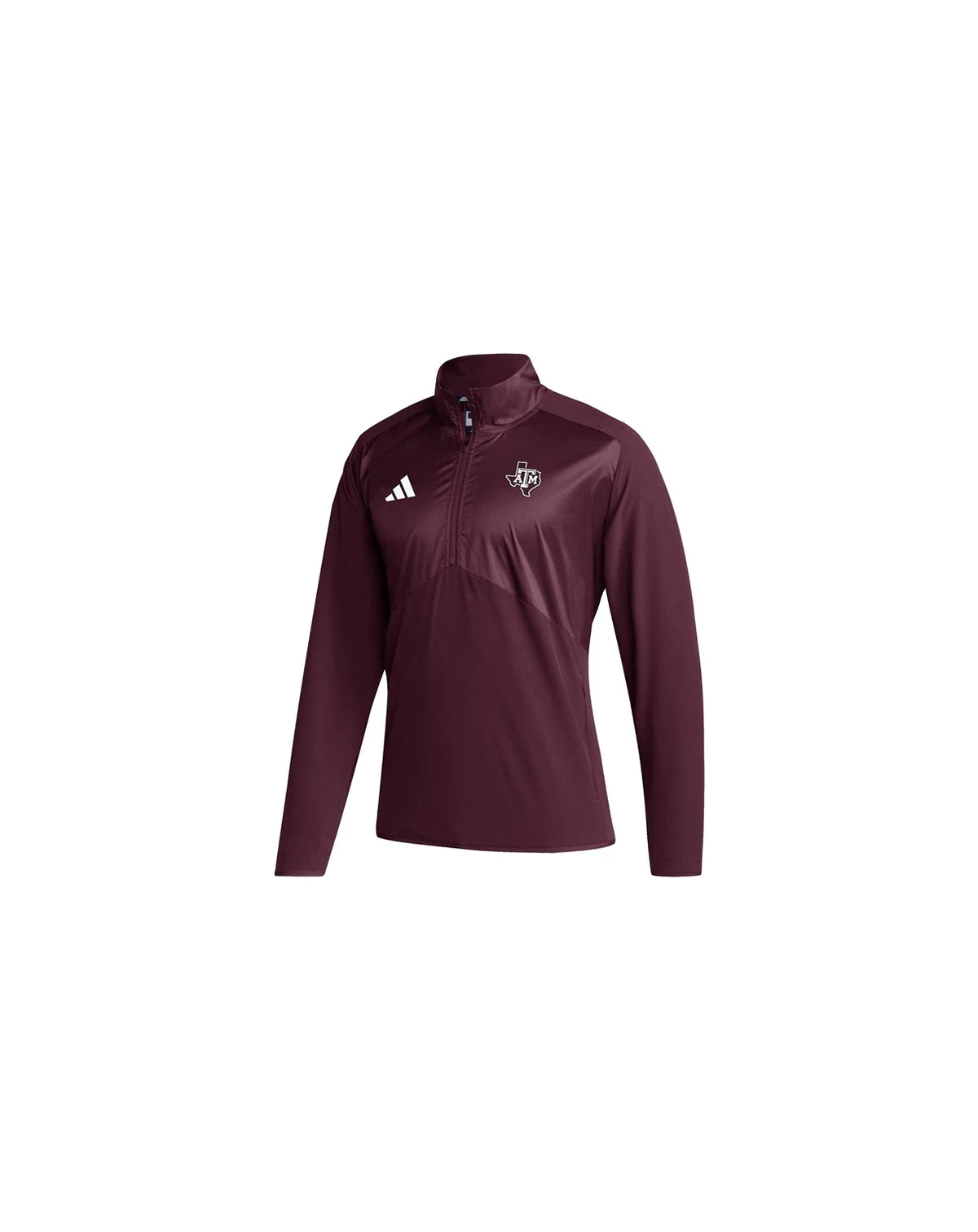 When you need to be prepared for a slight chill in the air, grab this Texas A&M Aggies Sideline quarter-zip jacket from adidas. It features the recognizable Texas A&M Aggies logo on the left chest as well as raglan sleeves, which will ensure you have a natural range of motion while you're out and about. The AEROREADY technology built into this jacket absorbs moisture and will keep you feeling dry throughout the day.