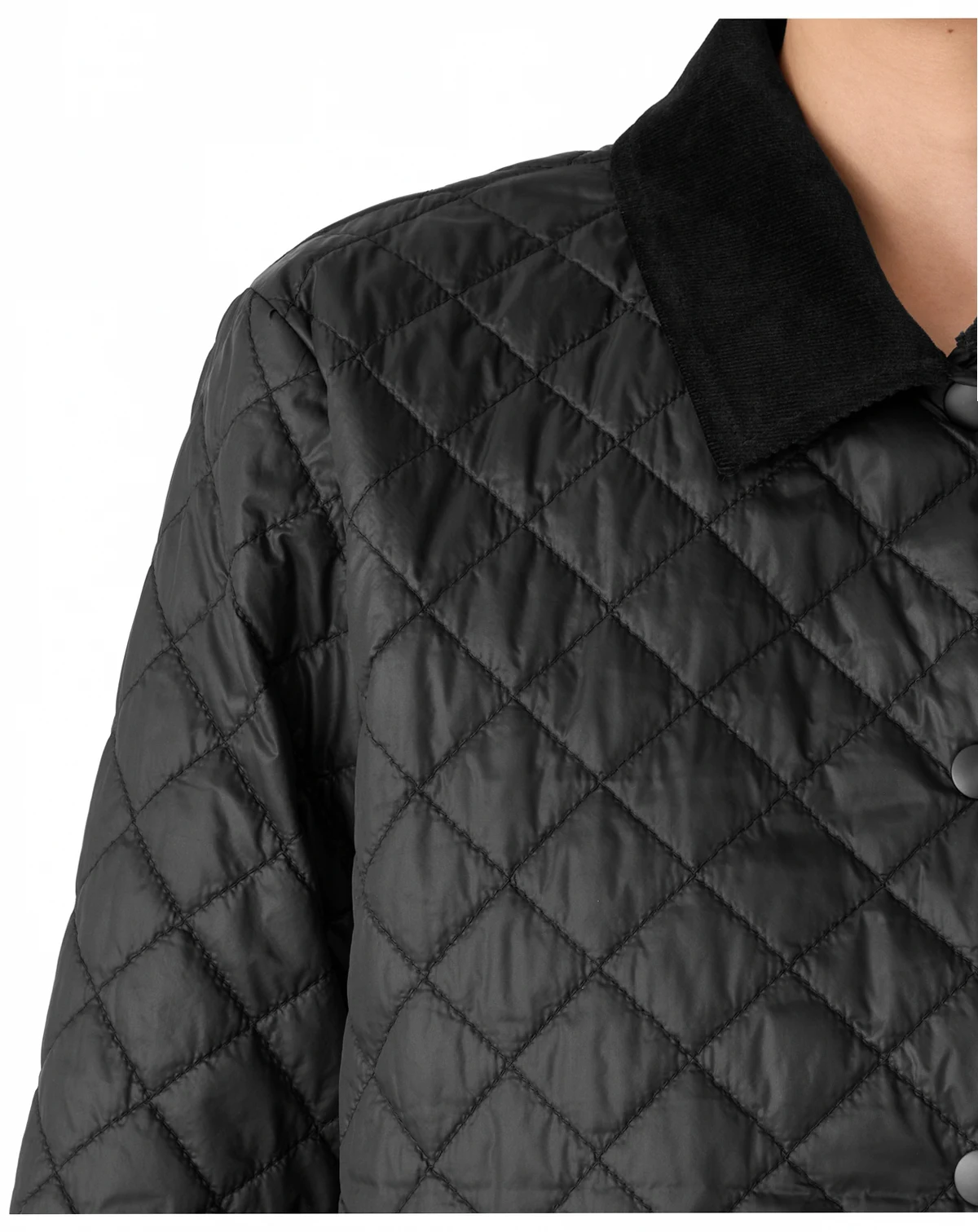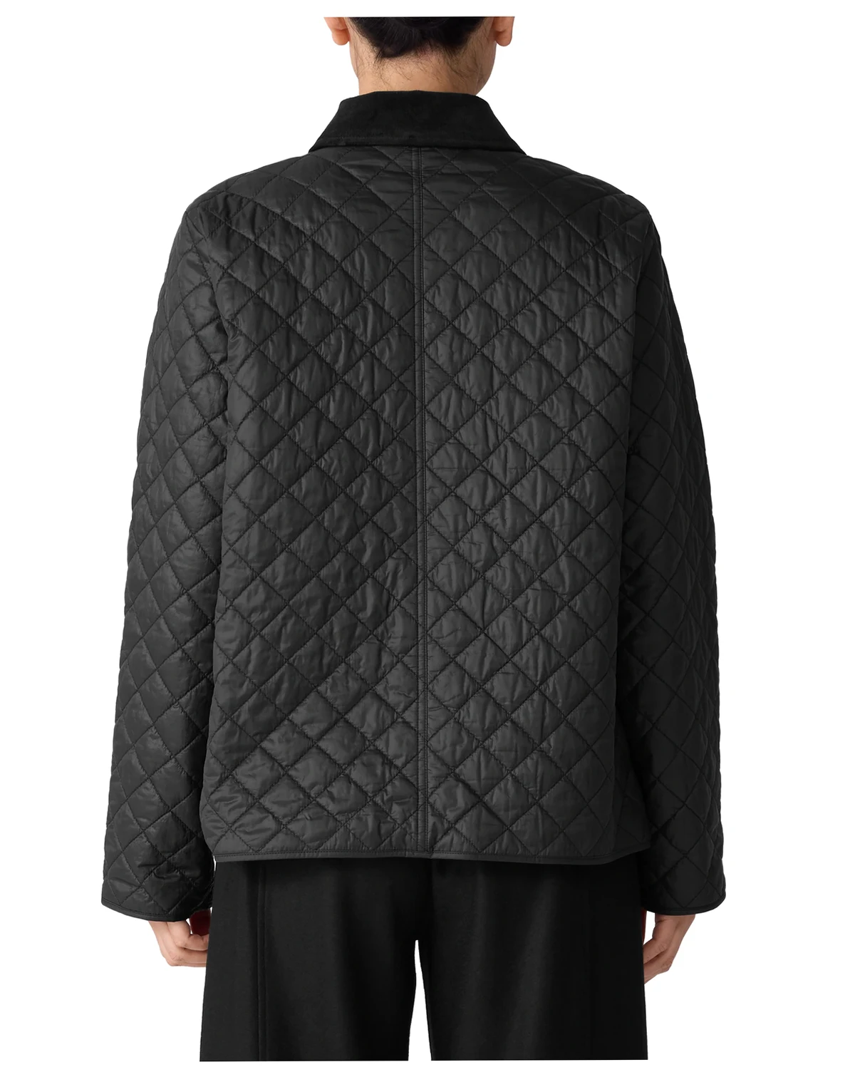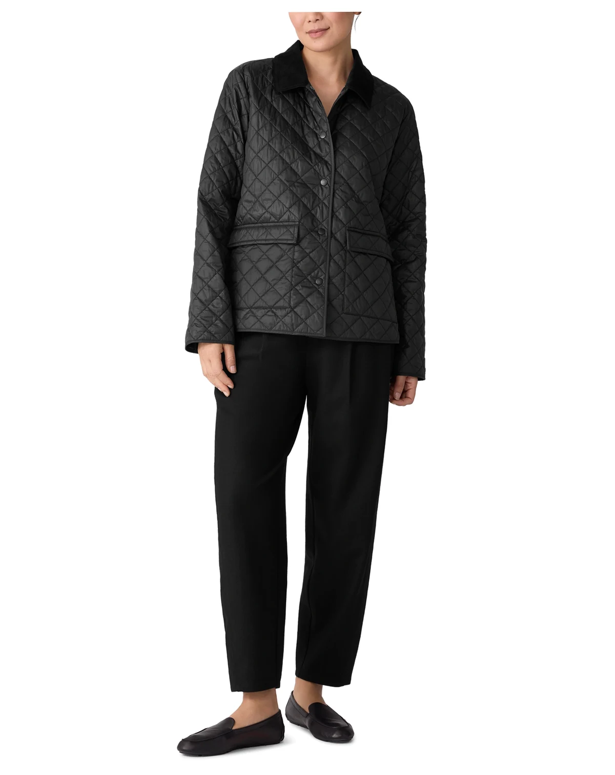 A papery weave with softness and subtle lustre characterizes this quilted jacket by Eileen Fisher. Featuring a classic collar, this filled jacket provides lightweight warmth and comfort.
