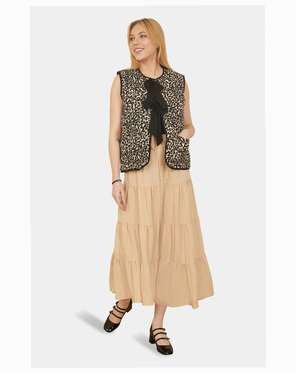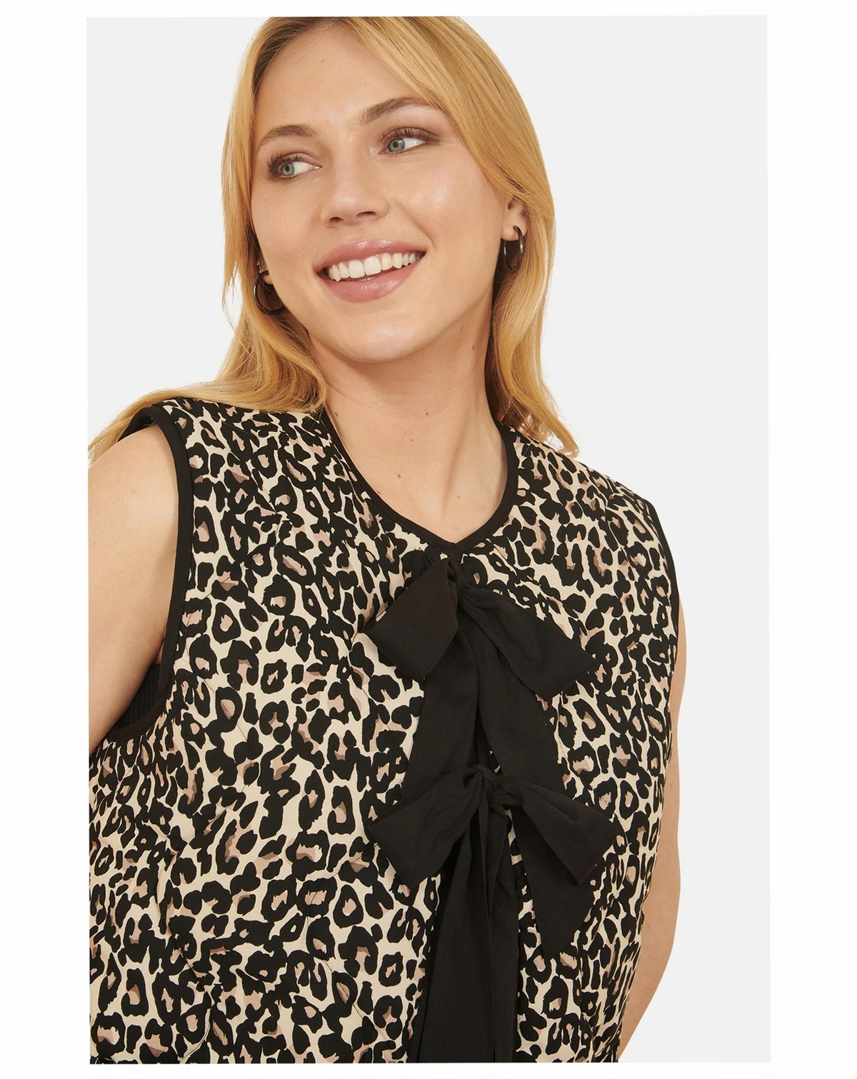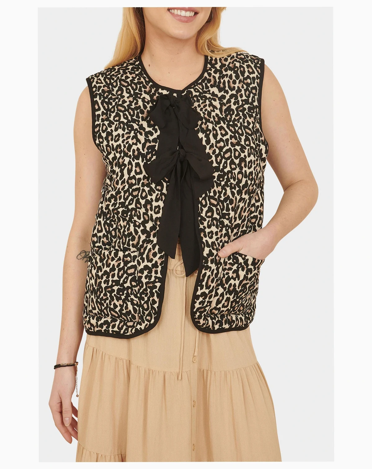 Add a little whimsy into your day time dressing with this waistcoat from Yumi. The bold and on trend leopard print, paired with the oversize bow tie fastening in the front, make this super fun addition to your wardrobe for the spring. Wear with a roll neck and jeans or style over dresses when the sun shines.