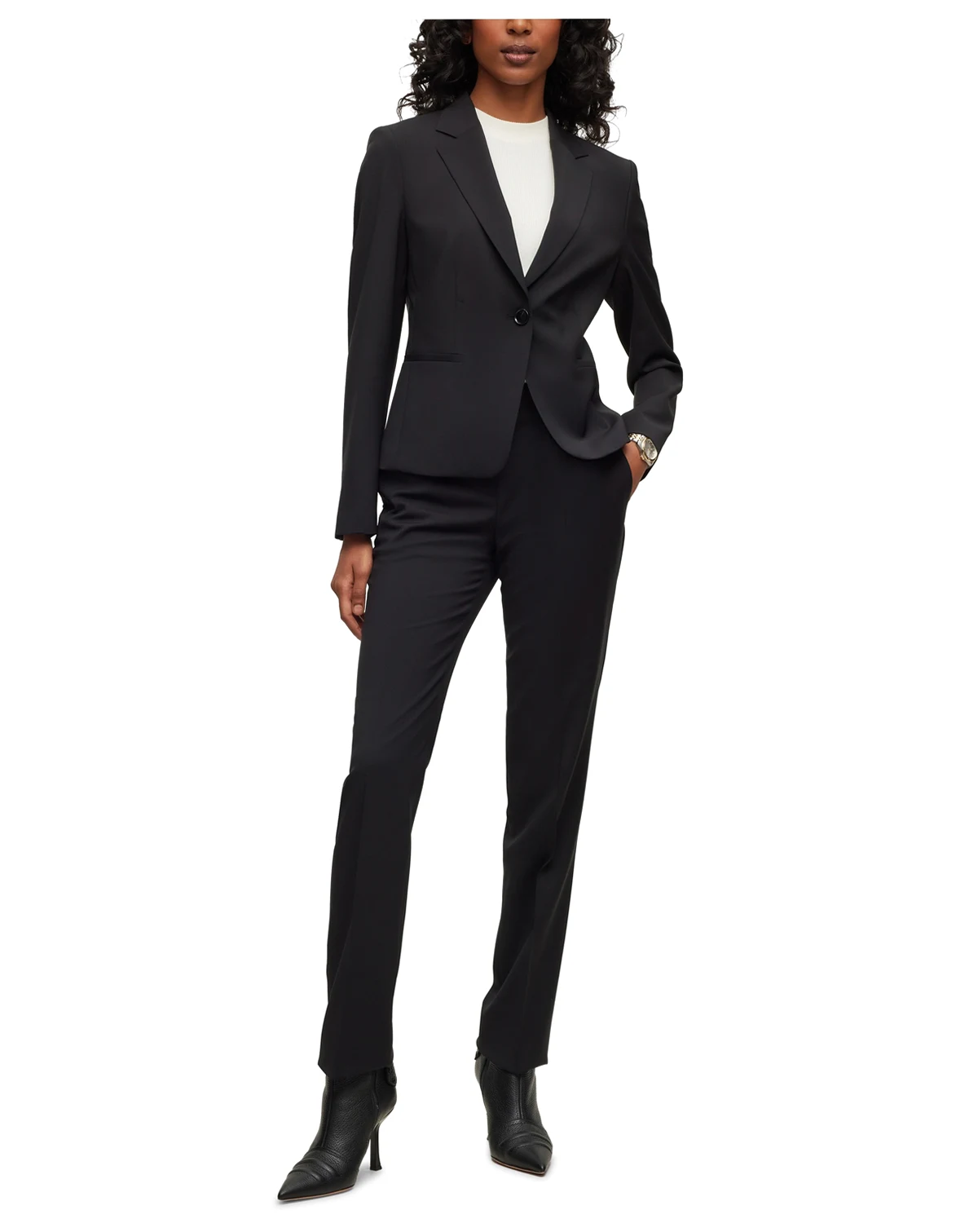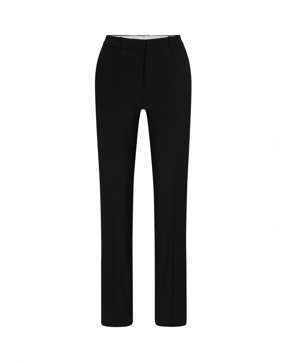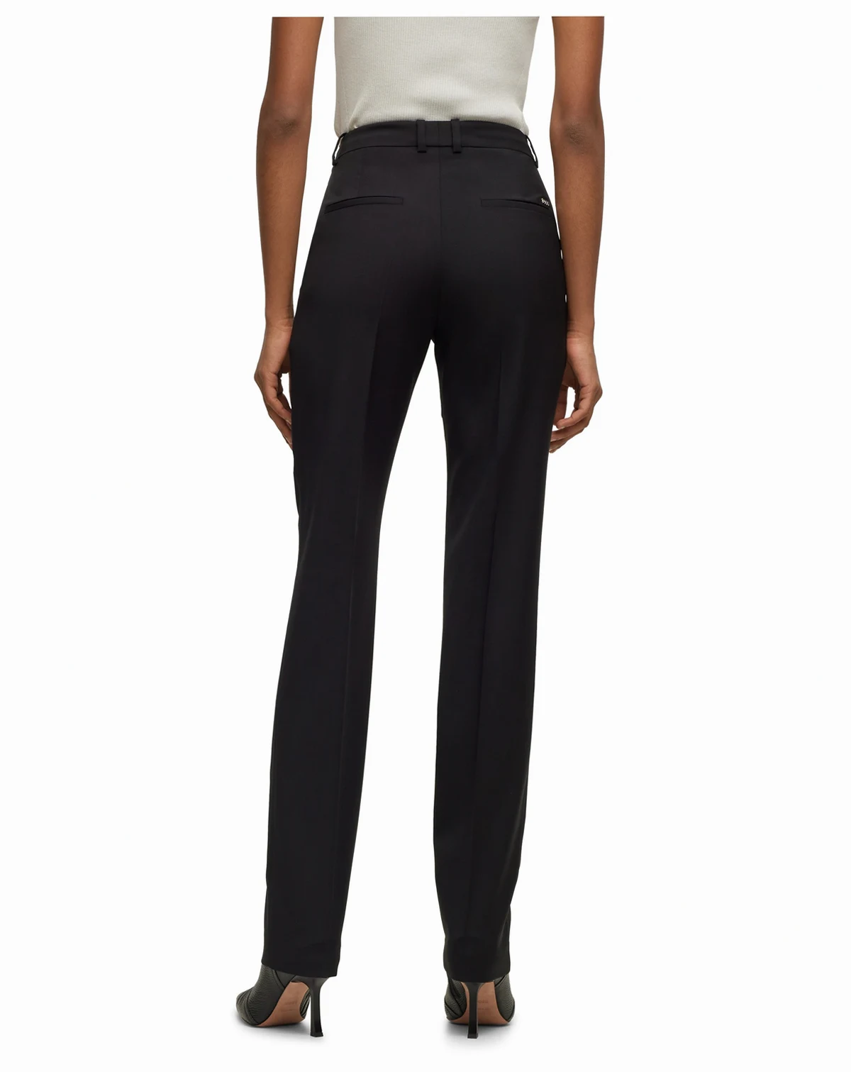 High-waisted trousers cut to a straight fit in solid-weave material for adaptable styling by BOSS Womenswear. For our Better boss products, we always use at least 60% better raw materials.