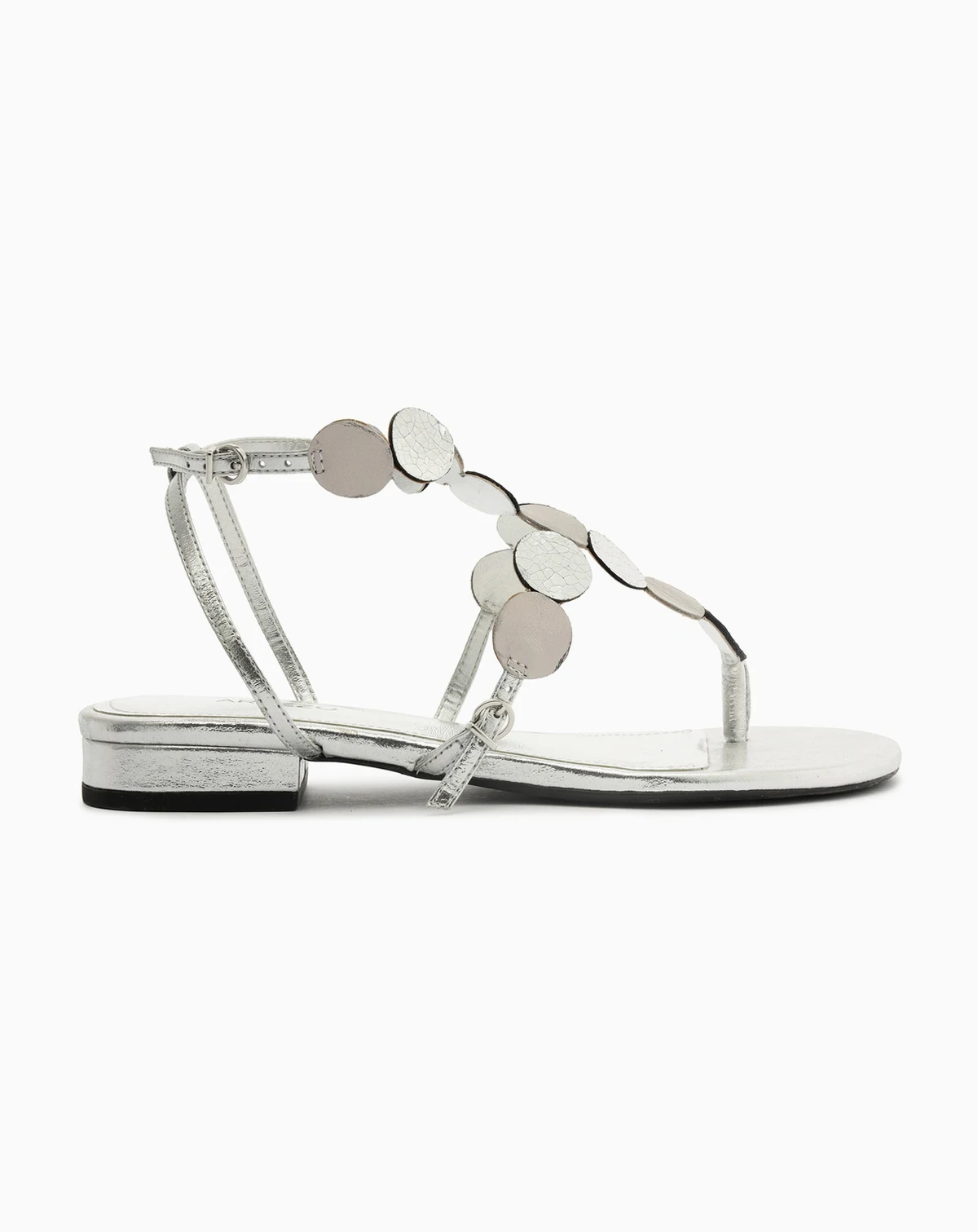 The Holly Low Block Sandal makes you stand out from the crowd. Delicately detailed with coin-shaped straps in shimmering silver and gold, it radiates timeless glamour and elevates your look to new heights.