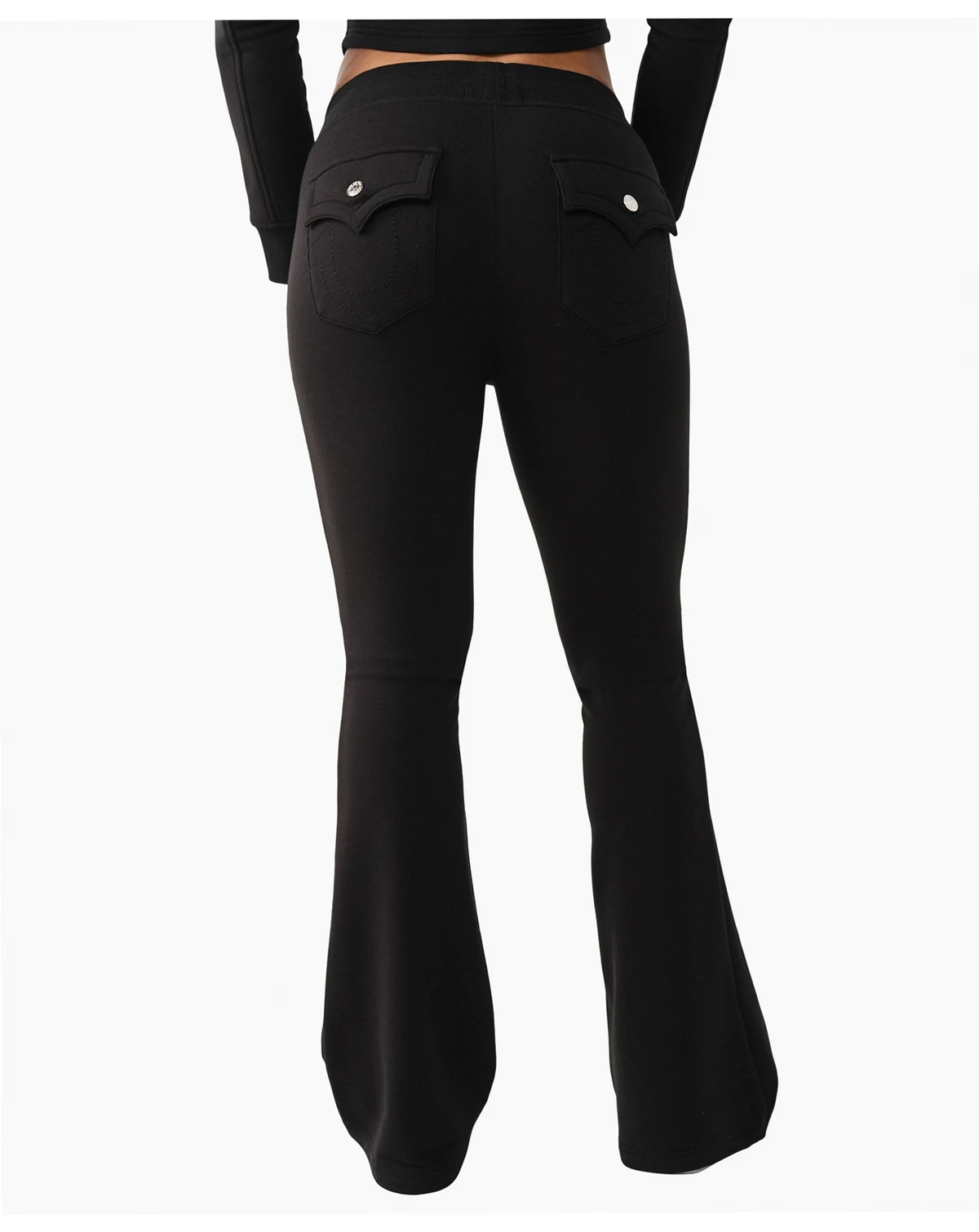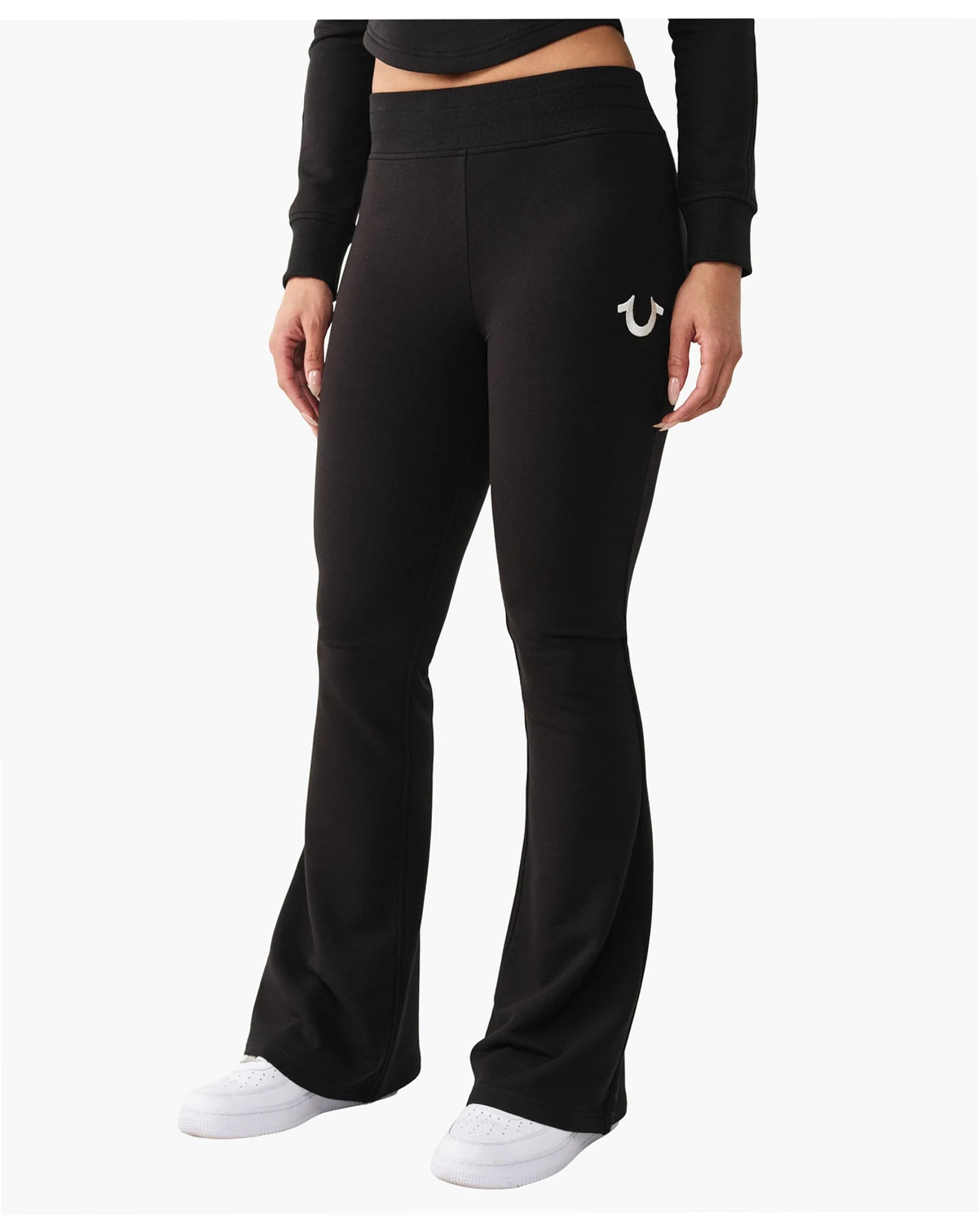 Made from soft terry fabric with an elastic waistband and bootcut fit, these ultra-flattering sweats feature a horseshoe detail at the hip, and embroidered horseshoe detailed back flap pockets.
