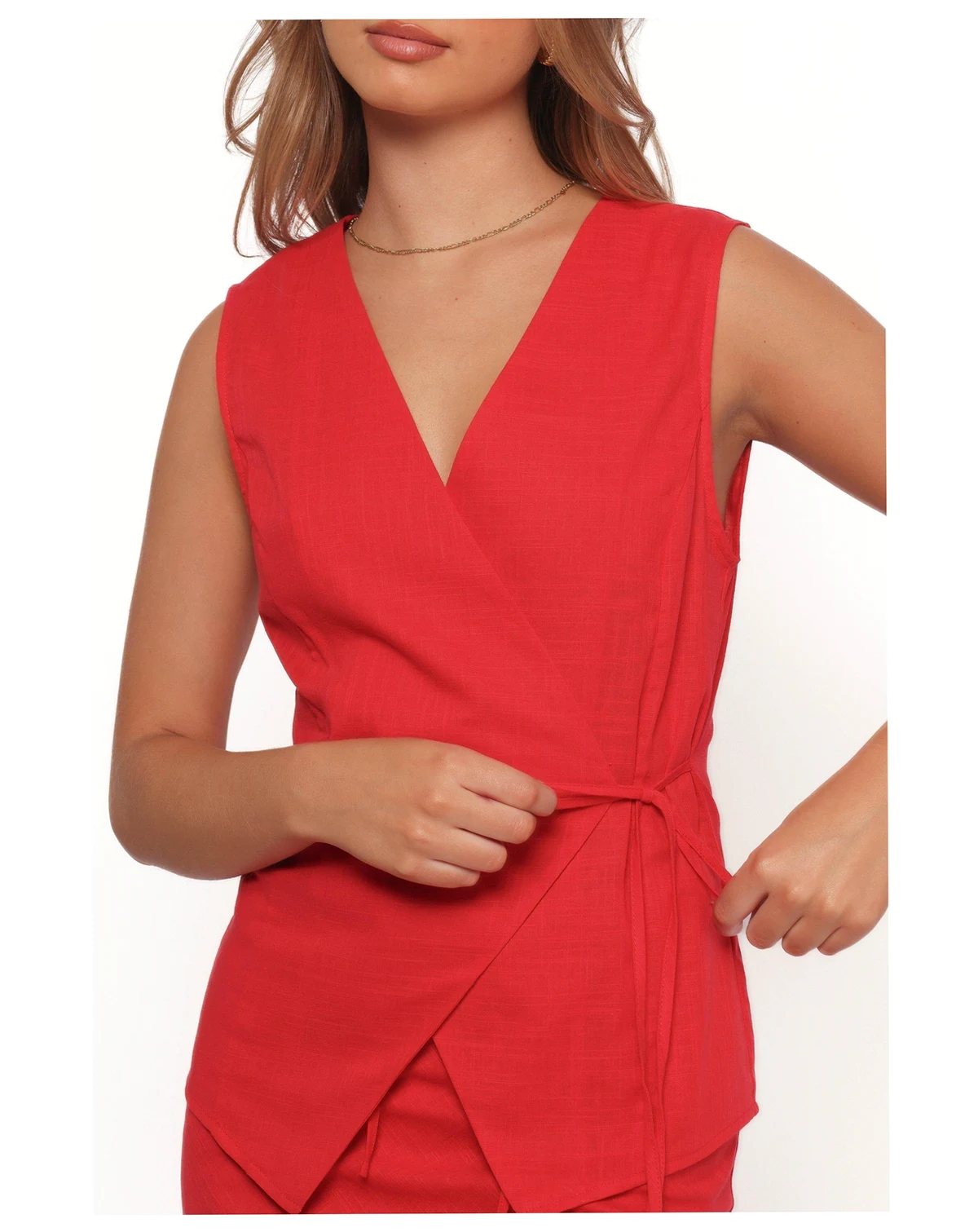 This piece is a must-have for those who want to effortlessly blend comfort with style. The top features a chic V neckline that gently frames your face, while its sleeveless design ensures you stay cool on those warm summer days.