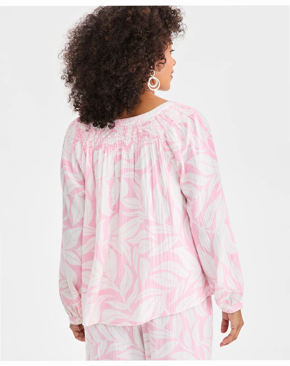 Petite Print Smock Neck Long-Sleeve Top, Macy's Exclusive