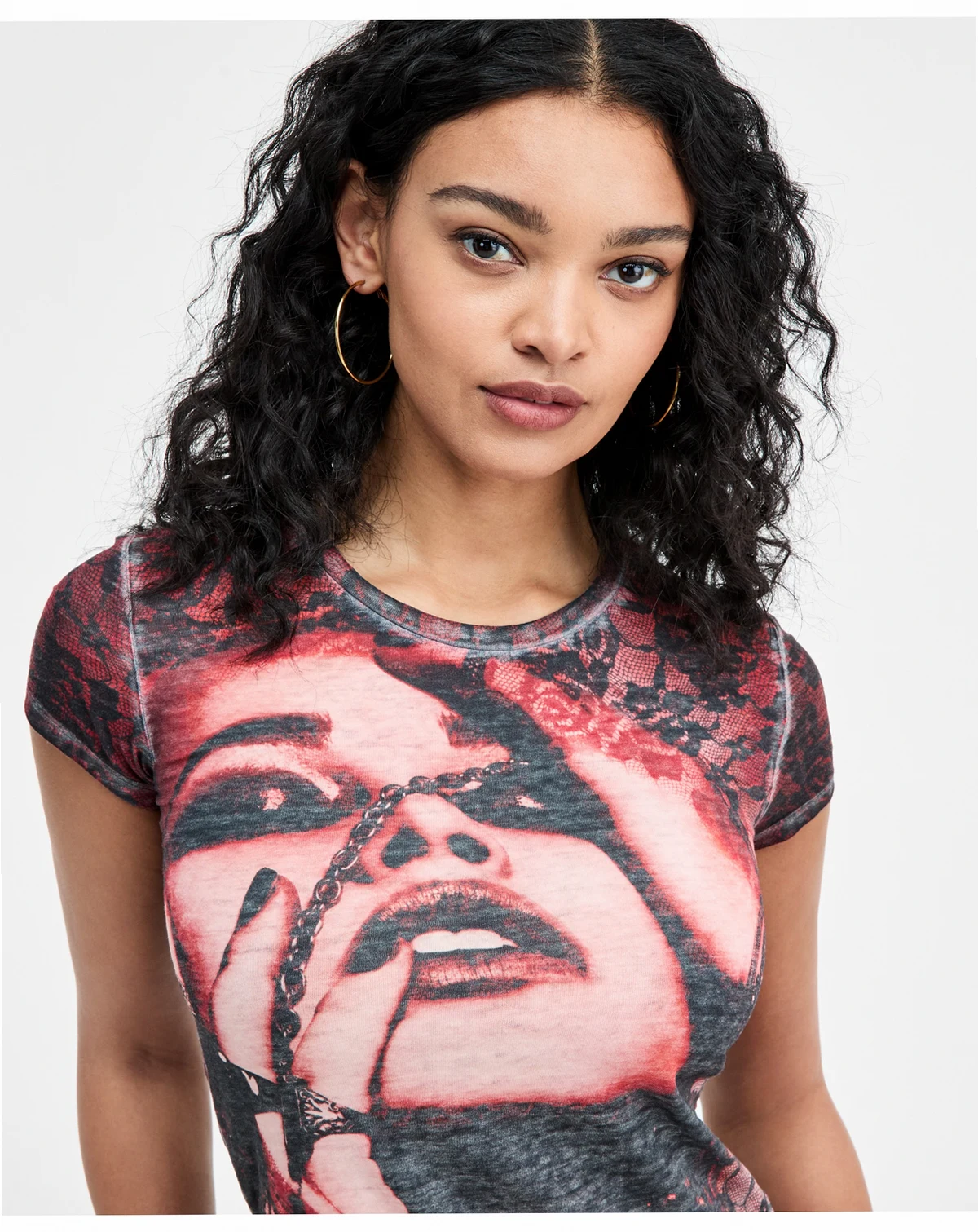 An oversized face graphic dials up the drama on this short-sleeve tee from GUESS.