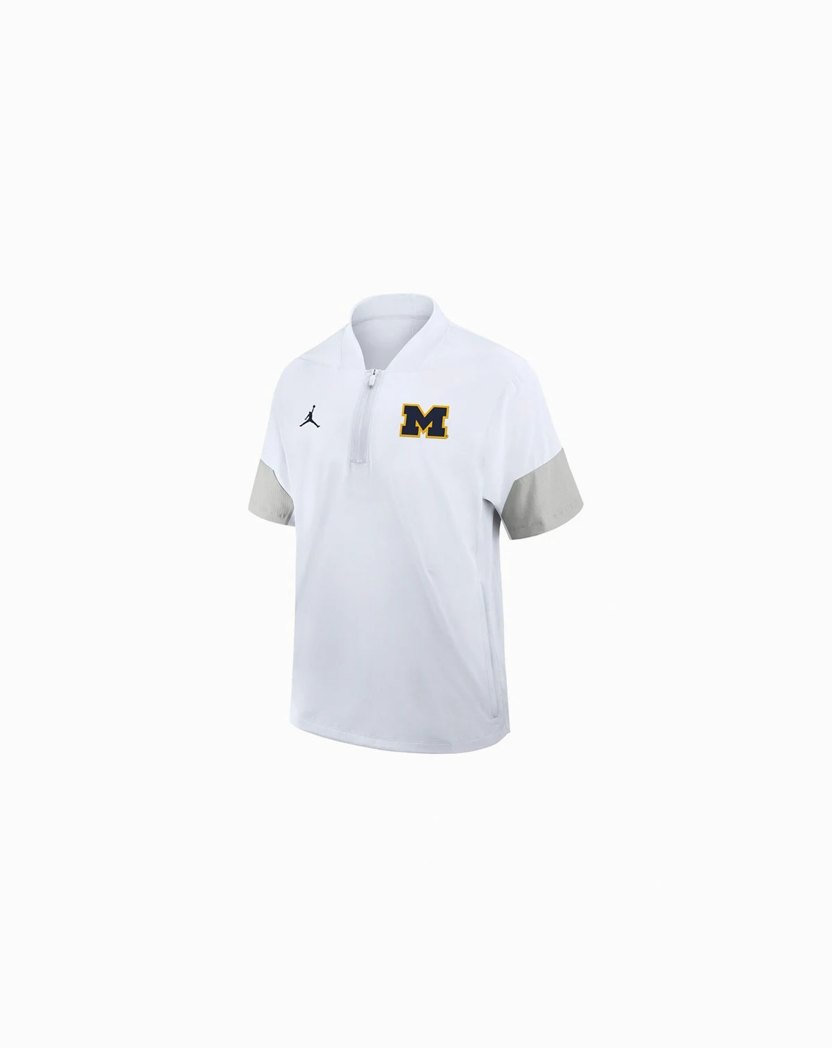 Gear up like one of the Michigan Wolverines coaching staff in this 2025 Sideline Short Sleeve Quarter-Zip Jacket by Jordan. Crafted with water-repellent taffeta fabric, it offers lightweight, breathable coverage from the elements. Zippered side seams allow for easy use, making this Michigan Wolverines jacket perfect for layering in changing weather conditions.