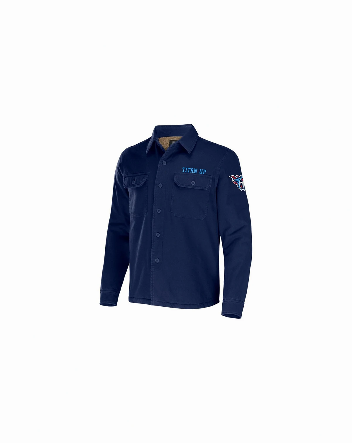 This Canvas button-up from the NFL x Darius Rucker Collection by Fanatics adds a rugged, stylish look to your Tennessee Titans gear. Designed with embroidered Tennessee Titans graphics for a one-of-a-kind look, this shirt jacket keeps you warm with its sherpa lining and midweight design. A longer hem also provides some extra coverage.