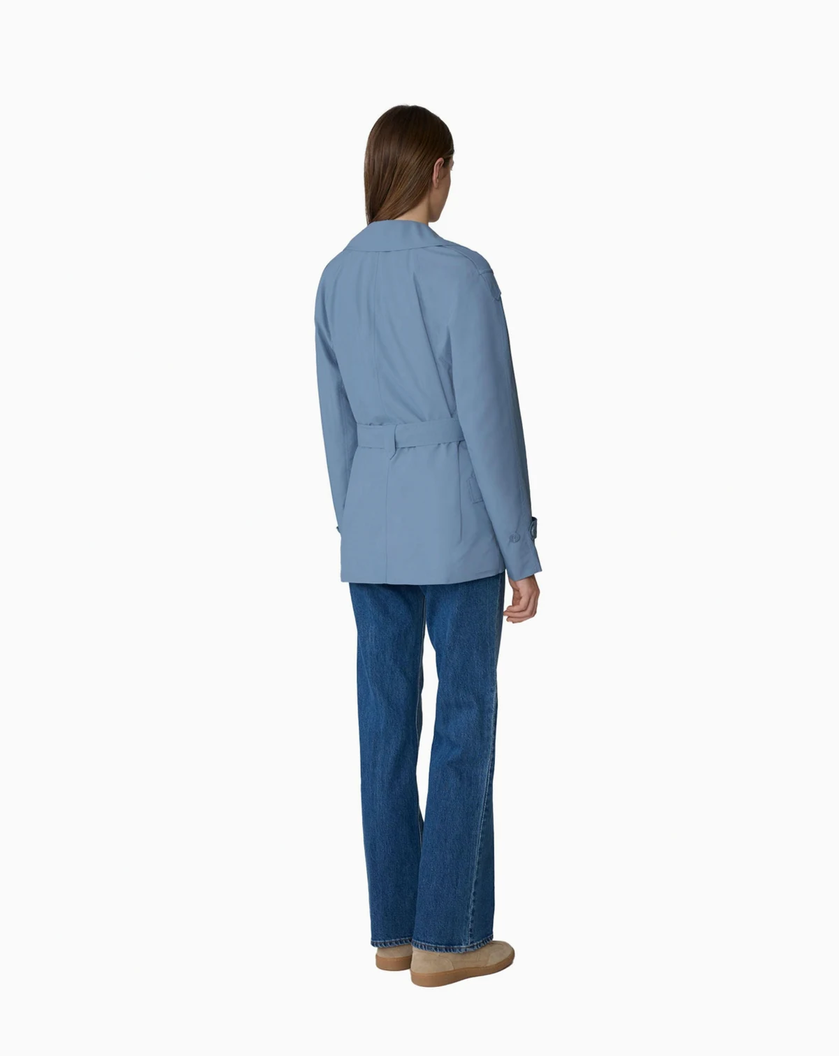 • Relaxed-fit • Below-hip • Napoleon collar • Double breasted button front closure • Raglan sleeves with shoulder tabs • Detachable tie belt • Adjustable sleeve tab with buttons • Angled welt pocket; RELAXED – Loose fit for on-the-go comfort • Length: Short — Intended to hit at or slightly below the hips • Coat length from shoulder to hem: 28” / 71 cm Packable into a carrying bag included • Water-repellent