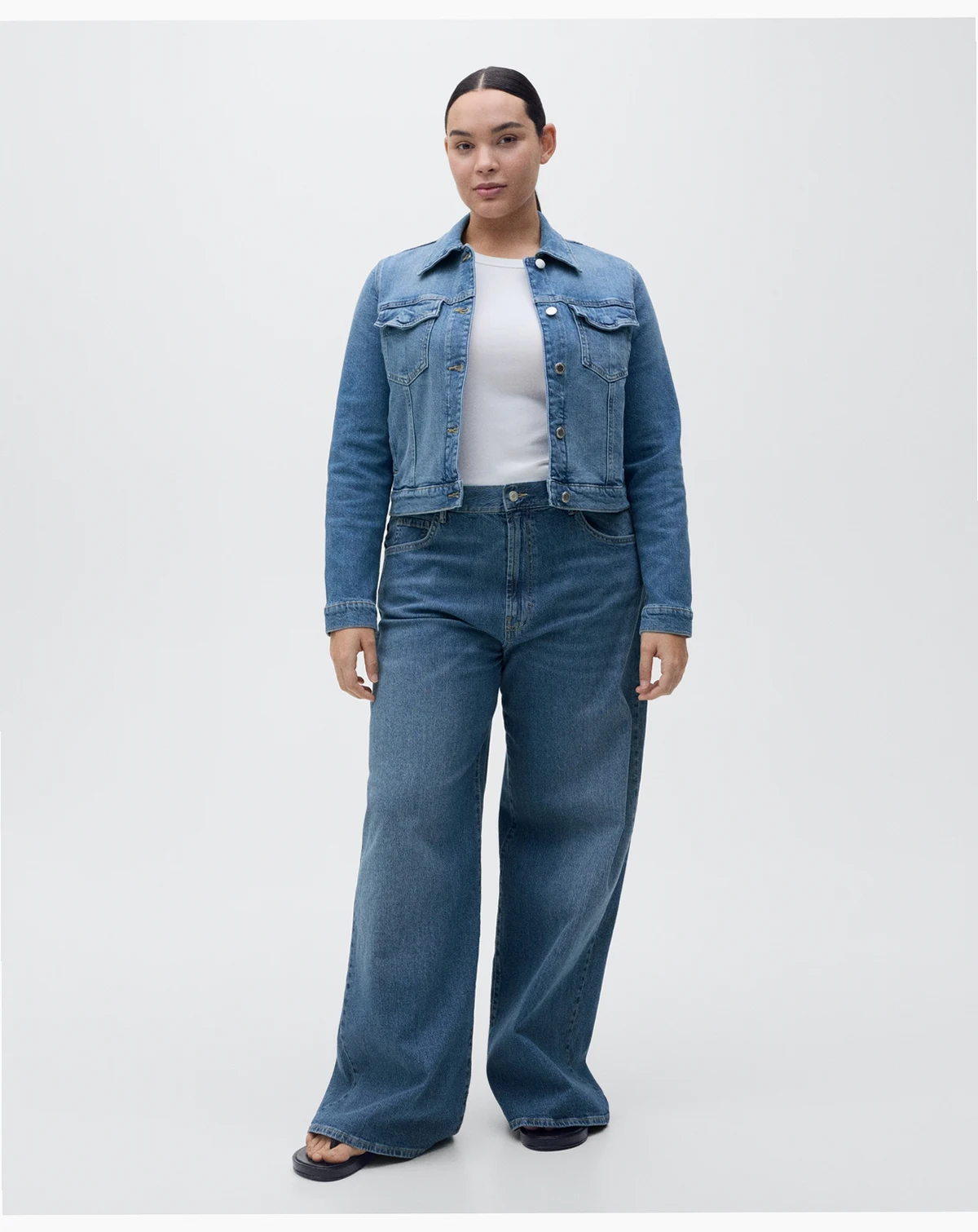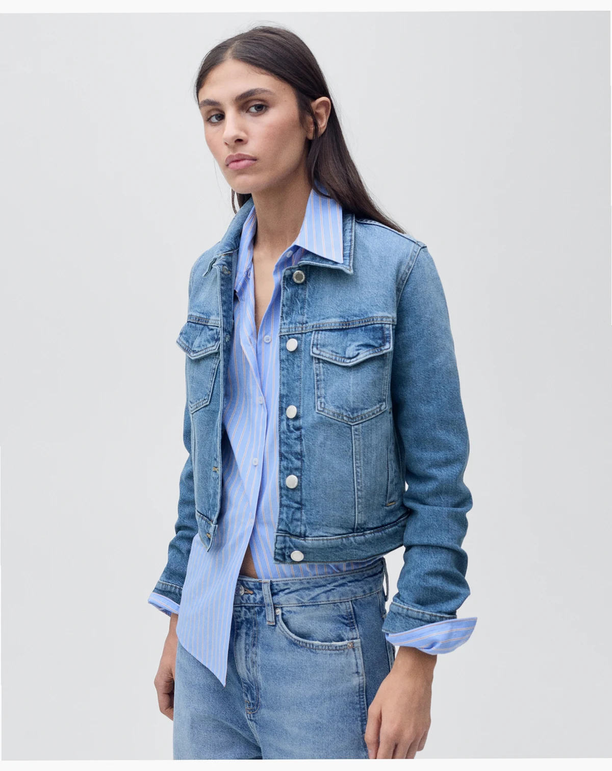 Effortlessly stylish, the Crop Denim Jacket from Mango is a versatile staple. Made from denim-style cotton fabric, this jacket features crop and straight design, two patch and flap pockets on chest.