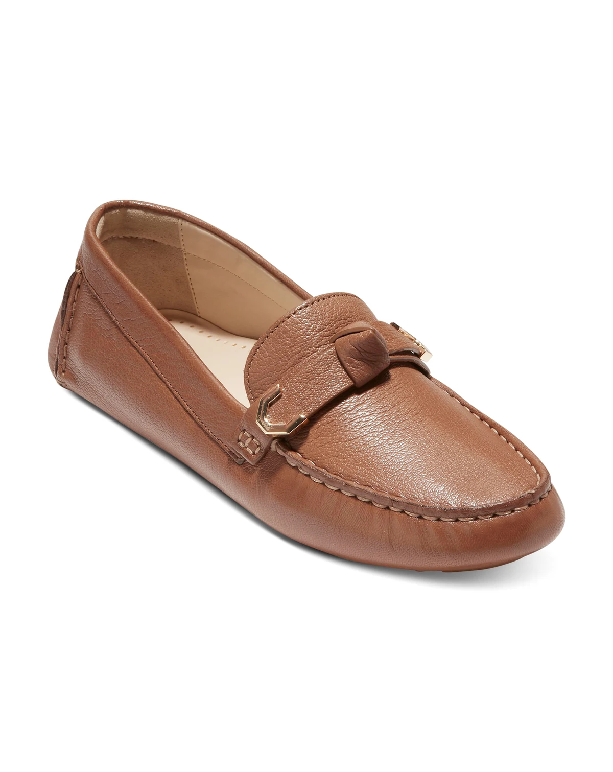 Plush linings ramp up the cozy factor on the smart moc-toe design of the Evelyn loafer flats from Cole Haan.