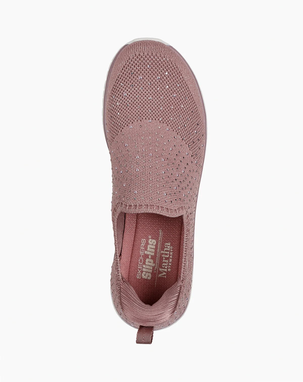 Seize the day in the delightful comfort and dazzling style of these Skechers x Martha Stewart Women's Slip-ins: Virtue - Icon Walking Sneakers. Crafted from a gem-embellished knit upper, this lace less silhouette is equipped with a supportive Exclusive Heel Pillow and a Skechers Air-Cooled Memory Foam insole, so your everyday treks feel as effortless as it gets.