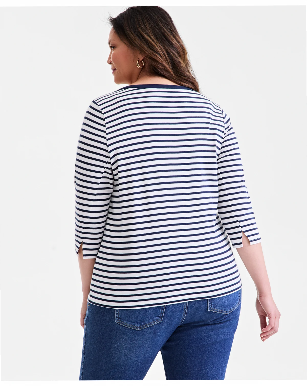 Plus Size Stripe Pima Cotton 3/4-Sleeve Top, Exclusively at Macy's